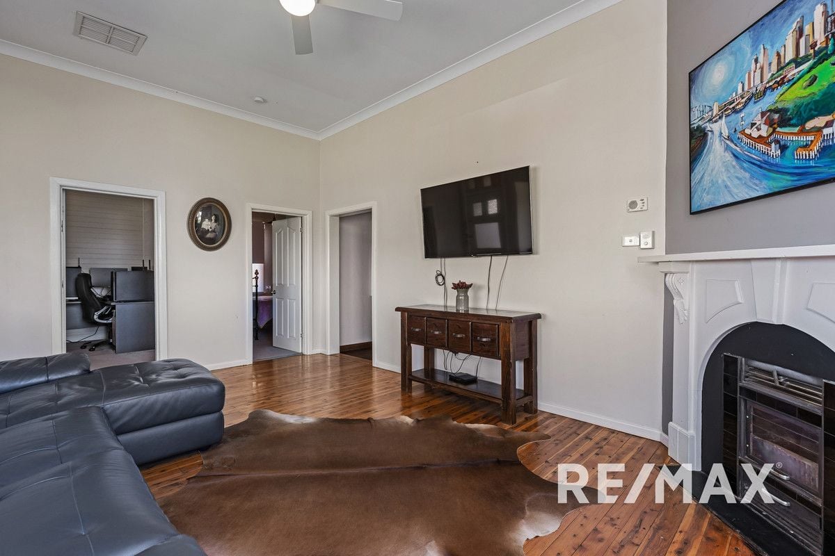 The property seamlessly fuses classic charm with modern practicality with vinyl planks line the rear of the home. This abode boasts three well-proportioned bedrooms, each featuring built-in robes, with the master showcasing a practical ceiling fan, while the third bedroom reveals a charming built-in mantlepiece and drawers, adding character to the space