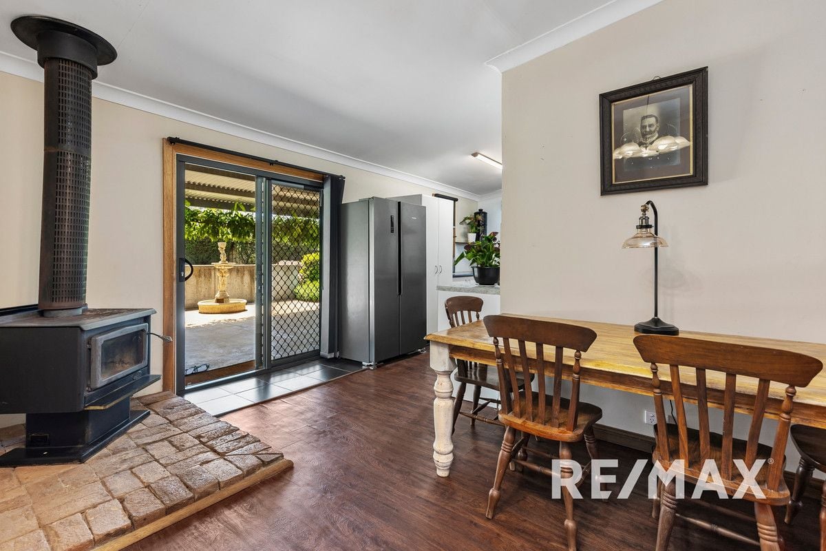This unique property presents a exciting opportunity to acquire an enchanting blend of homely comfort and generous outdoor space. This charming 3-bedroom, 1-bathroom house sits proudly on a generous 1378 square metres of land, boasting breath-taking elevated views, ample space for both living and vehicular storage.Upon arrival, you are greeted by a decorative glass door leading into a welcoming lounge adorned with polished floorboards, high ceilings and a warming wood fire, perfectly complemented by a gas bayonet and a new split system to cater to all seasons. Natural light cascades through duo blinds, while ducted cooling ensures comfort throughout the residence.