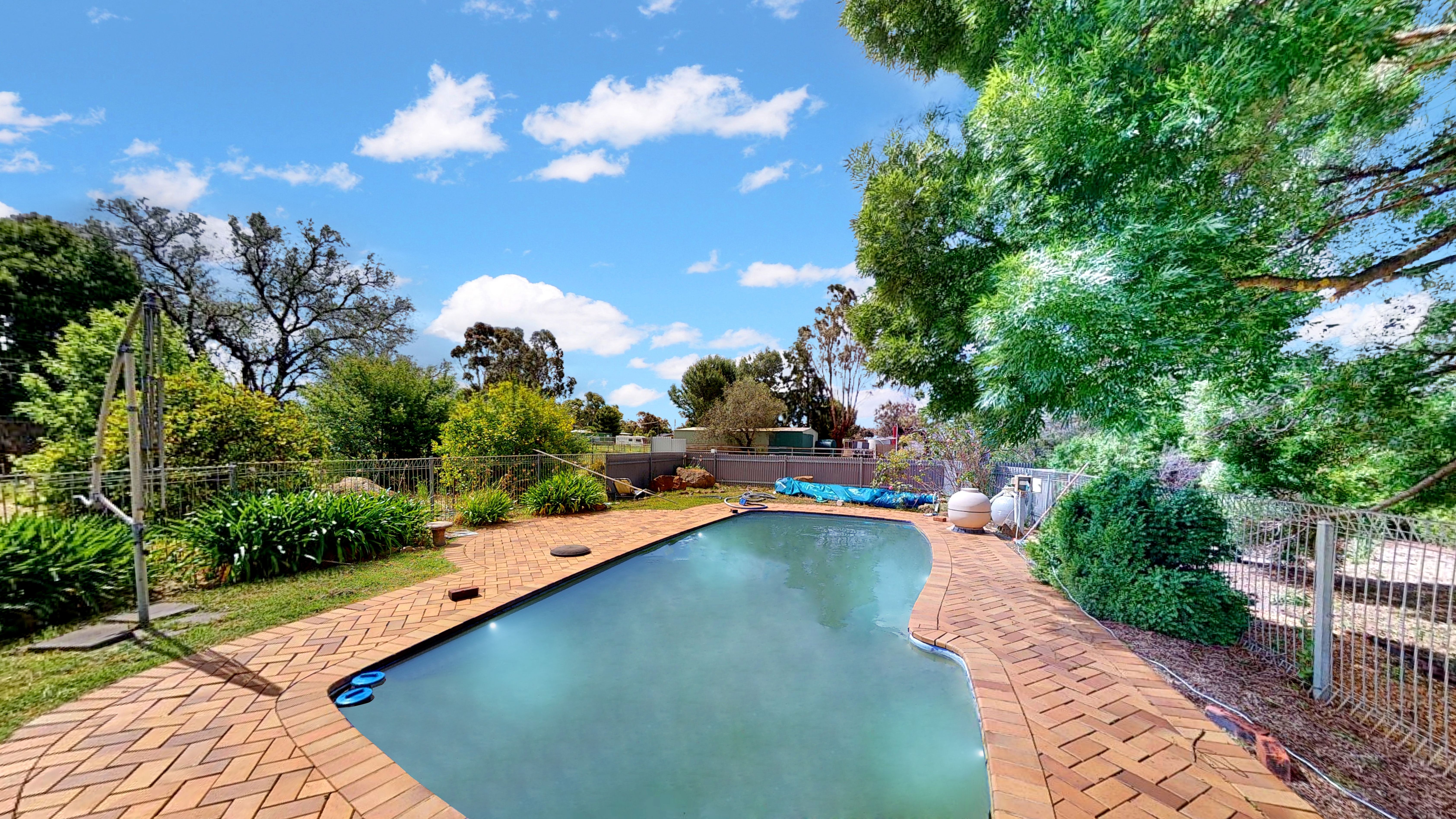 Powered shed, single carport, inground pool and an orchard of established fruit trees