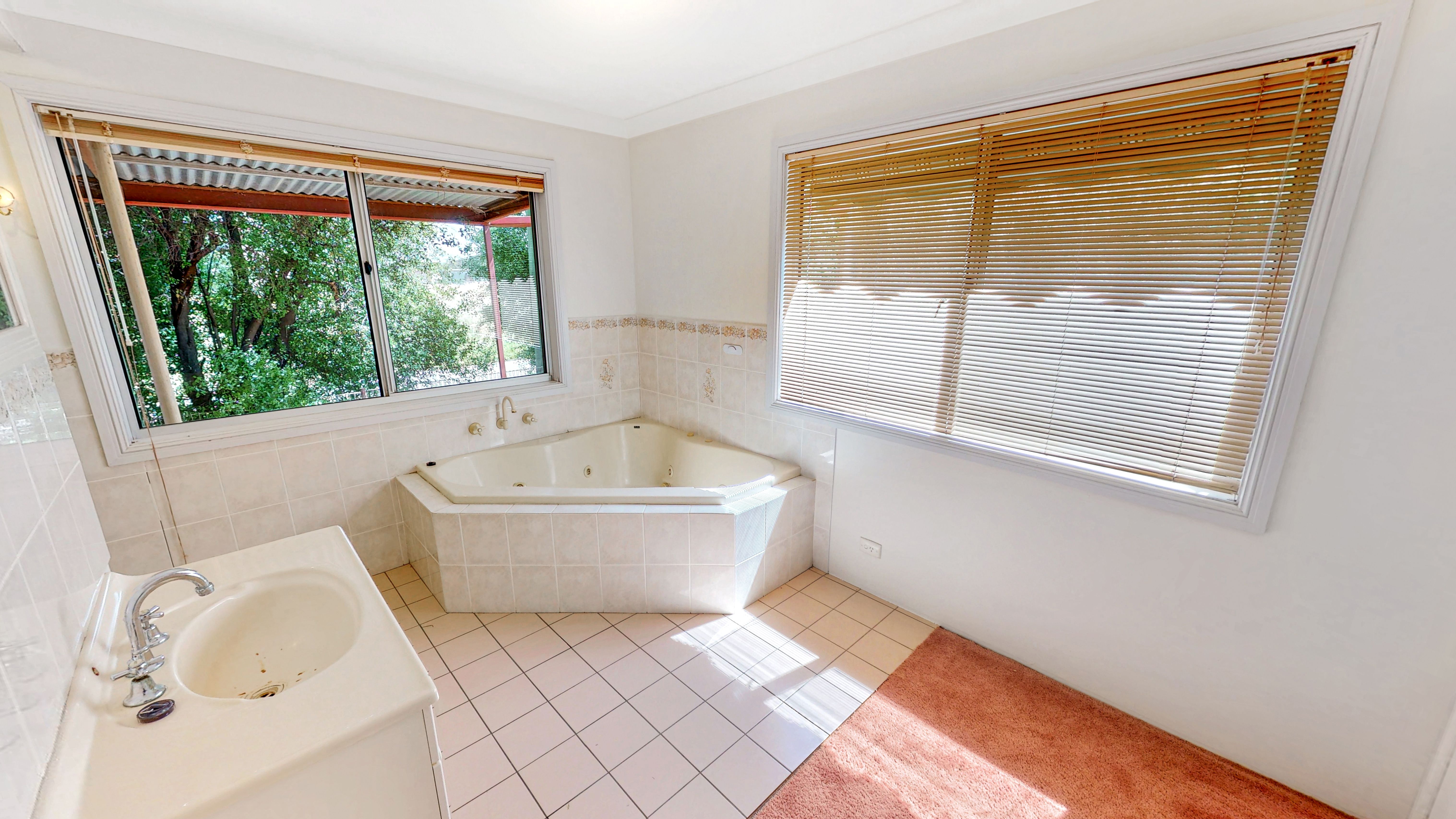 Central hallway leads to a laundry with exterior access, separate toilet and a large main bathroom with corner spa and ample space.