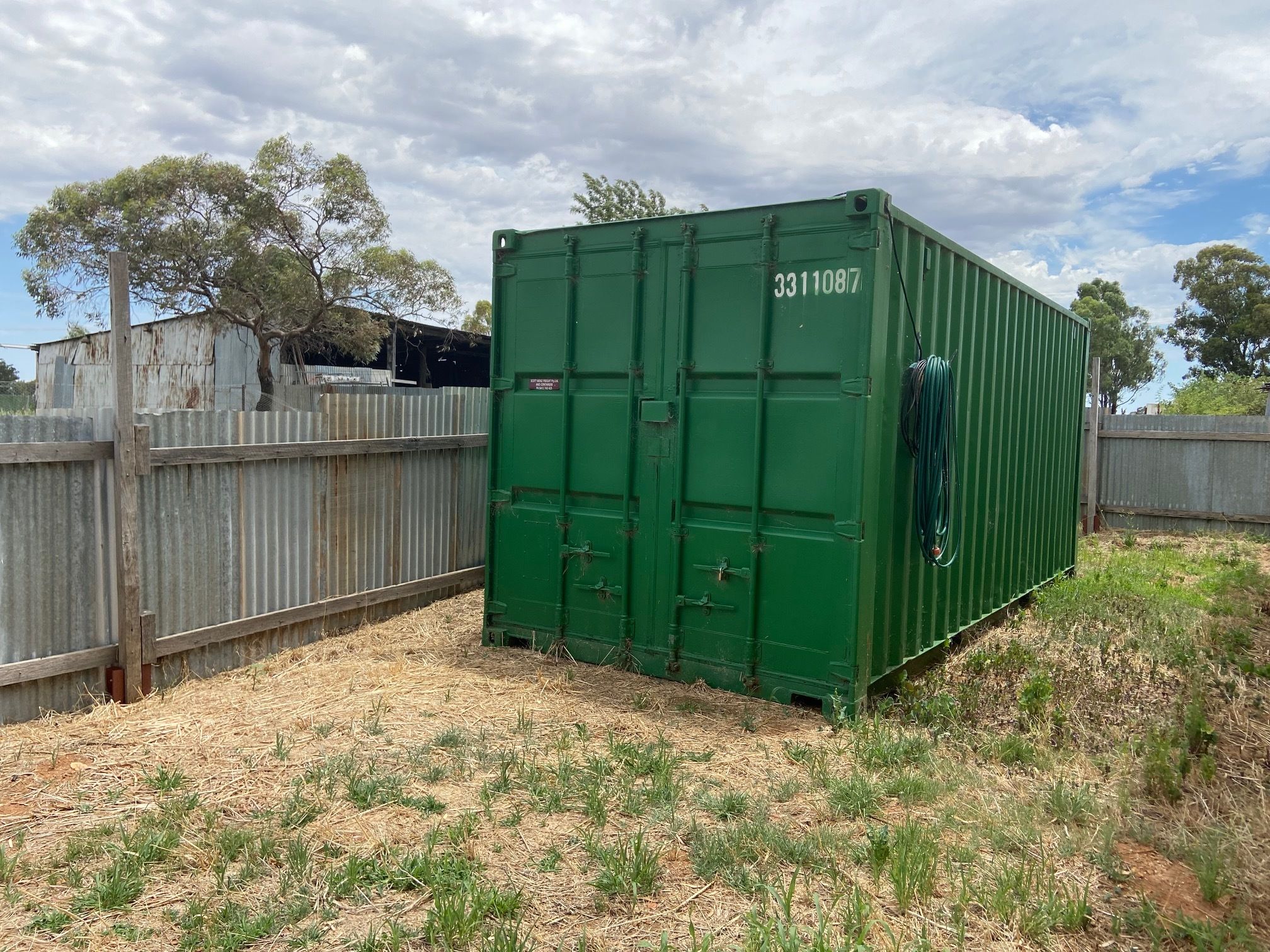An attractive 12 by 12 metre shed stands proud at the back of the block enjoying a 5 metre awning to the side and a 20 foot container behind which will be sold with the site