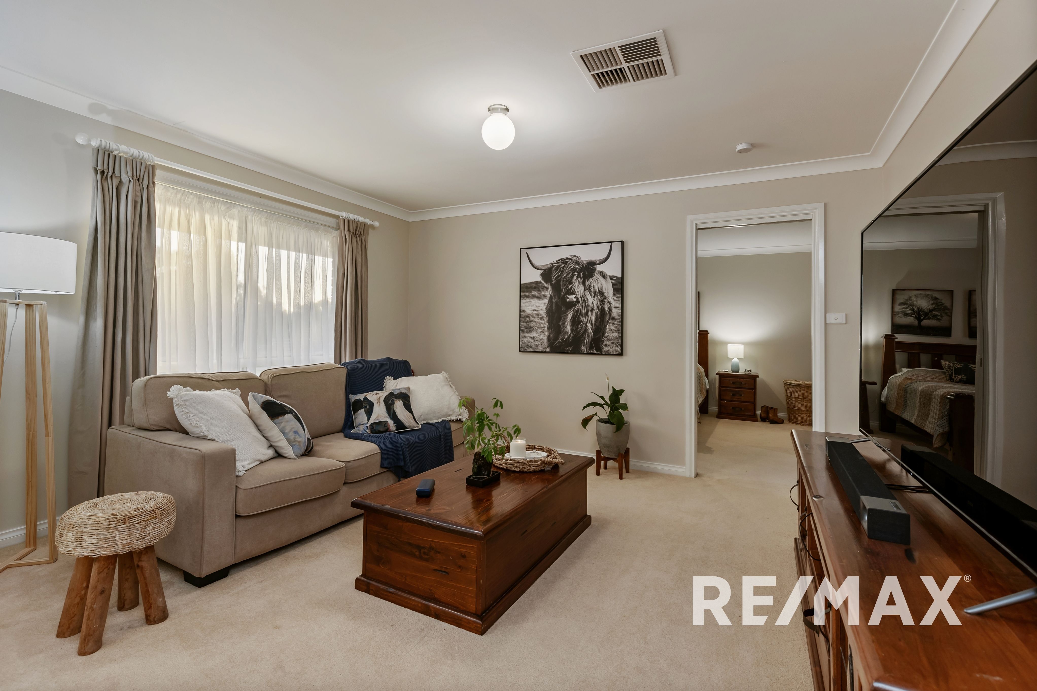 Accommodation is plentiful, with each bedroom thoughtfully appointed to ensure comfort. The master suite features an ensuite, walk-in robe, and elegant shutters, while the remaining bedrooms are well-sized and offer plush carpeting. Ducted cooling and a wood fire for year round comforts.