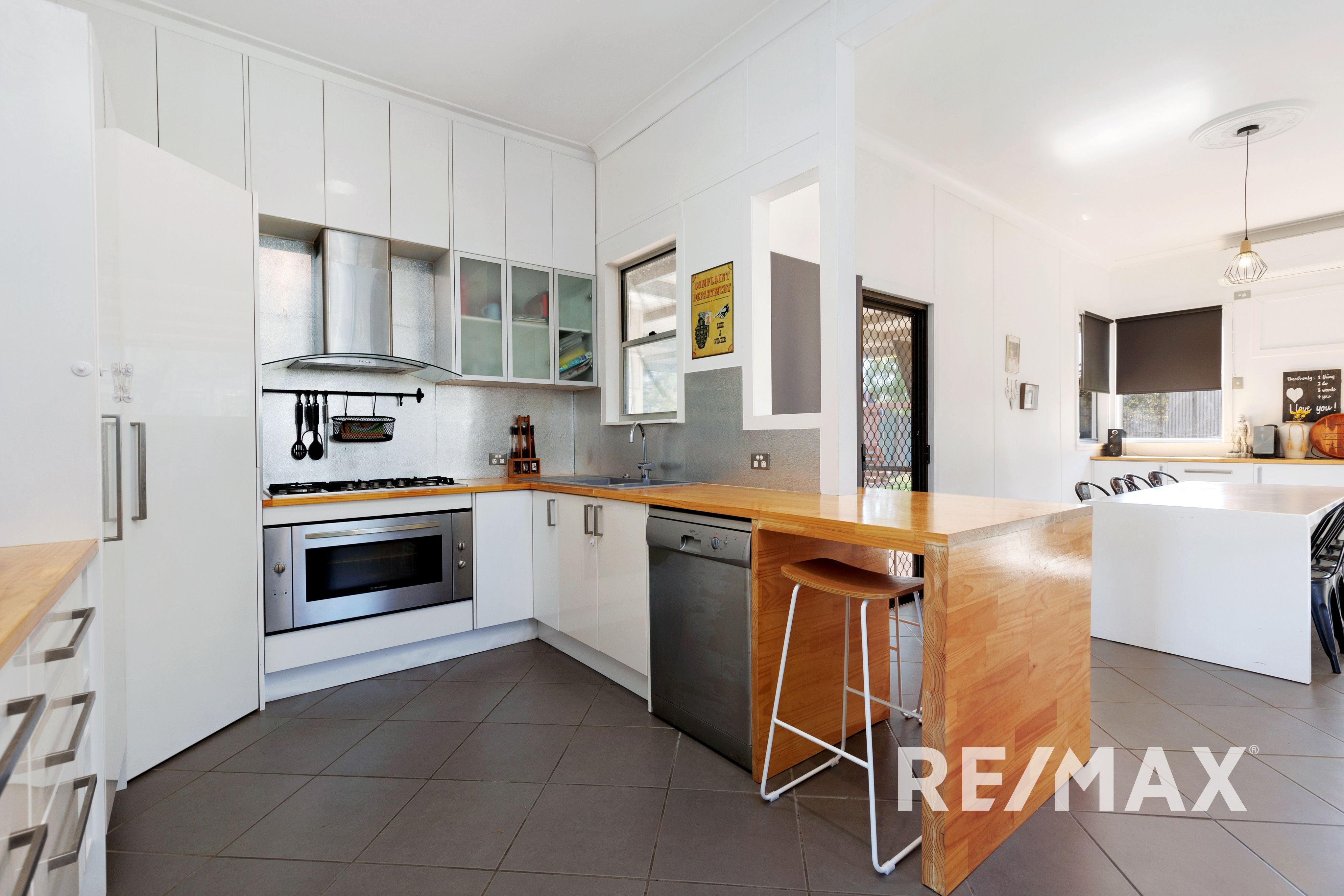 Entertaining is a dream in the open-plan kitchen, which overlooks a second living area and dining space. Timber benchtops and stainless steel splashback complement the 5 burner gas cooktop and expansive 900mm oven, while the dishwasher makes cleanup a breeze. Slide open the doors to discover a charming pergola area with a convenient second toilet, extending your living space outdoors.