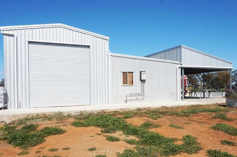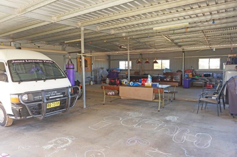 Large powered shed, double carport and shop area which has been previously used for lavender sales and tours with a disabled toilet featured, instant hot water and separate access from the main property entry