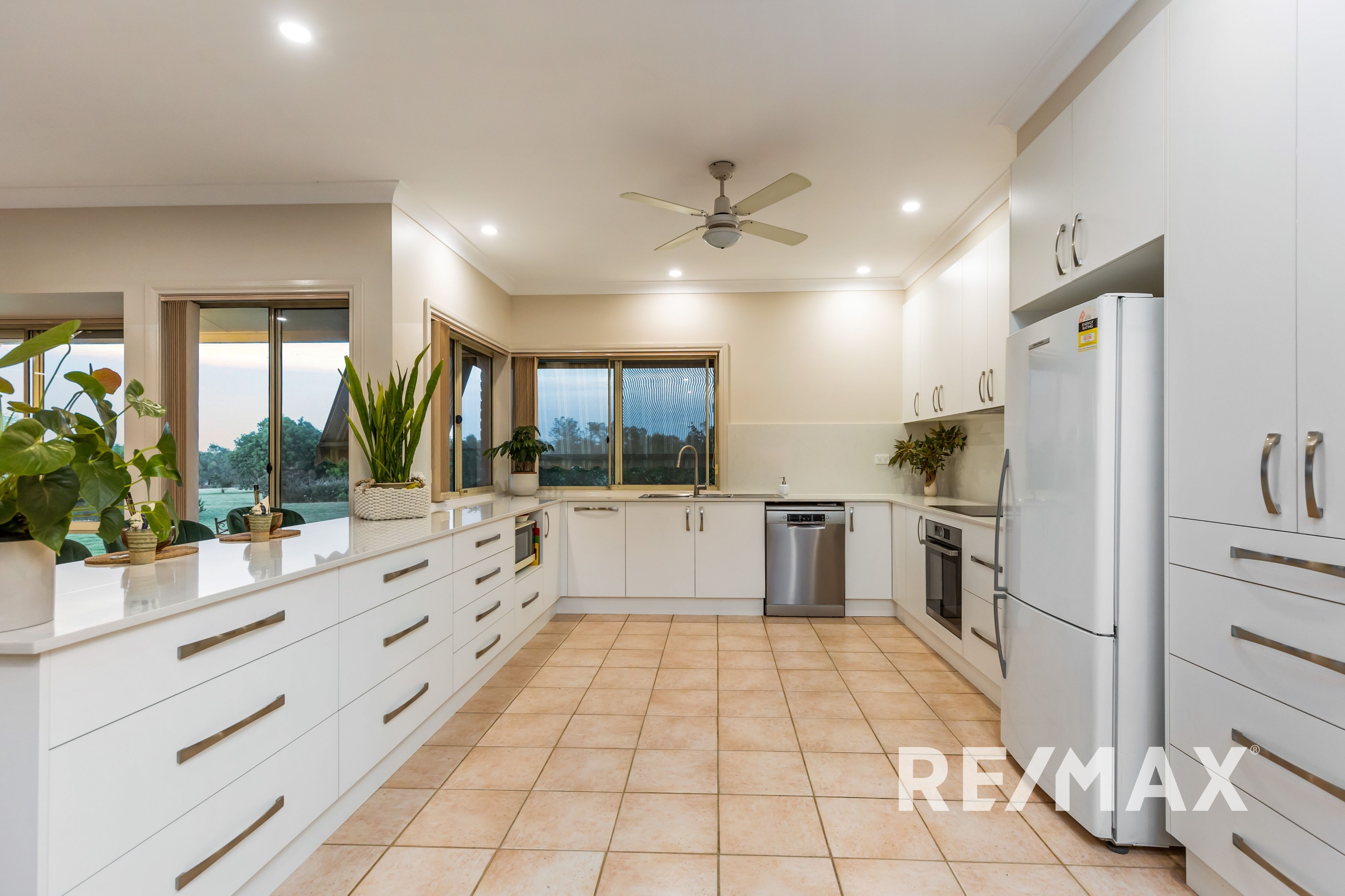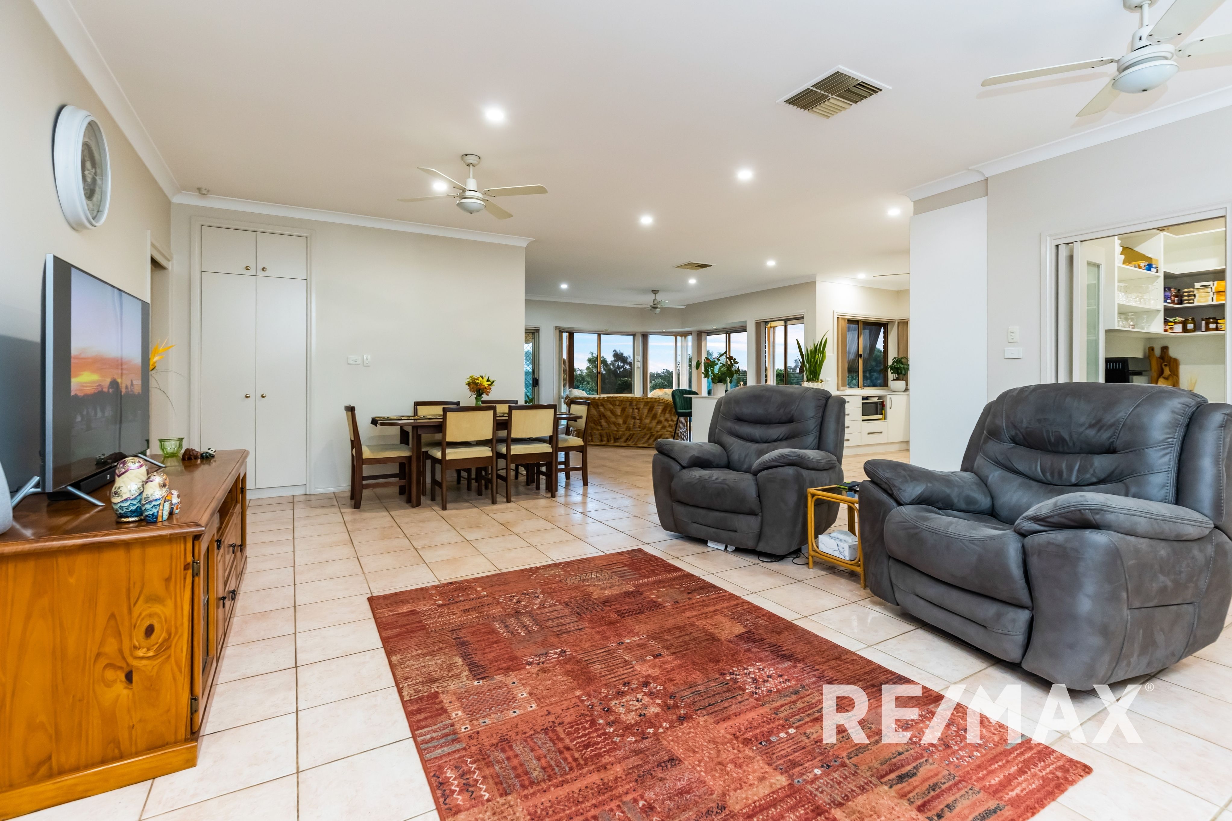 The heart of the home is the open plan living, dining, and kitchen area, which has been stylishly remodeled in 2021 to include a butler's pantry, stone benchtops and high-end appliances including dishwasher, induction cooktop & pyrolytic oven.