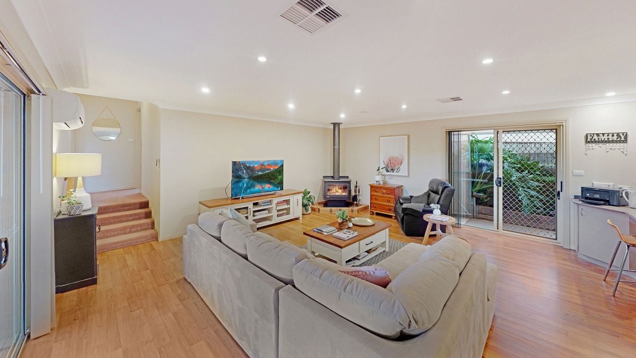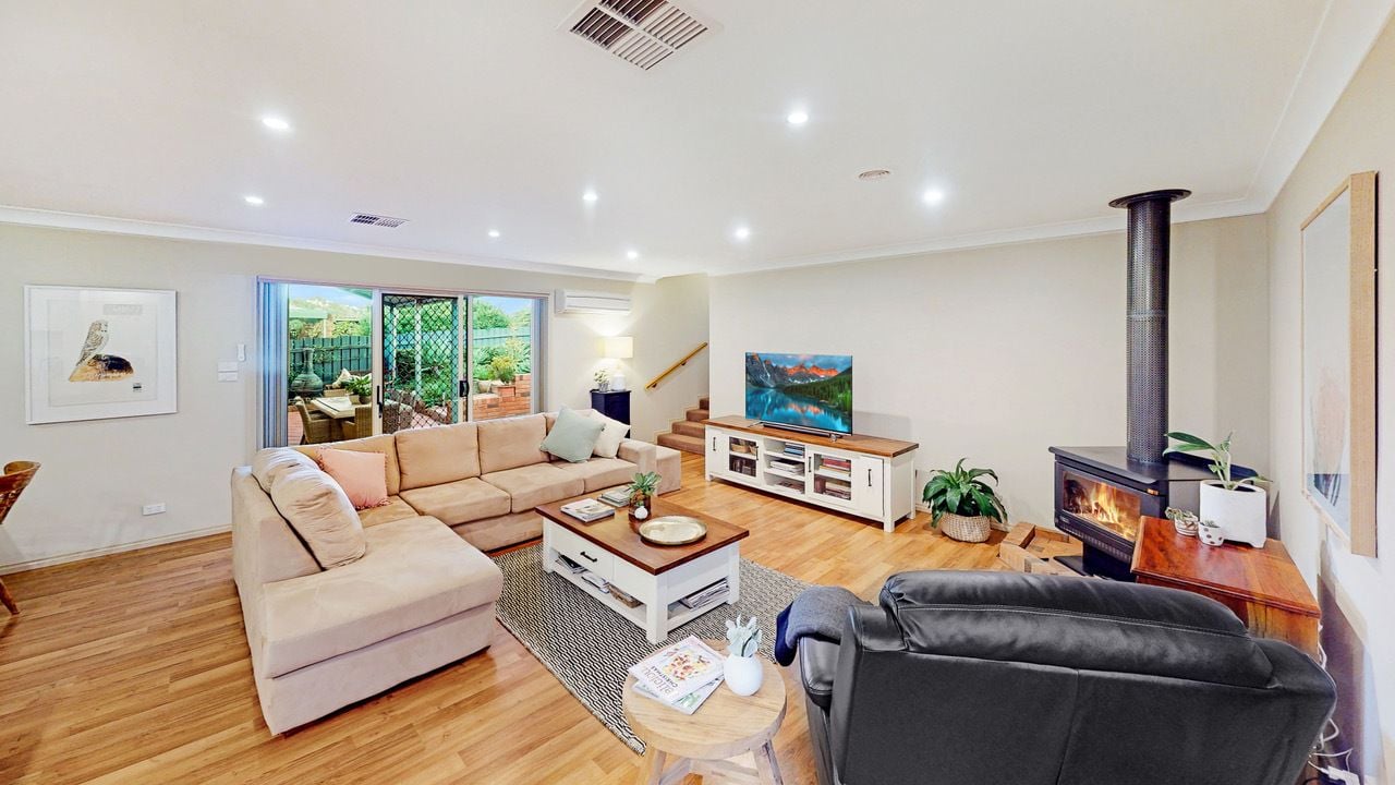 Heating and cooling are assured with three reverse cycle split systems, gas heating, evaporative cooling and a quality wood fire with a heat transfer system