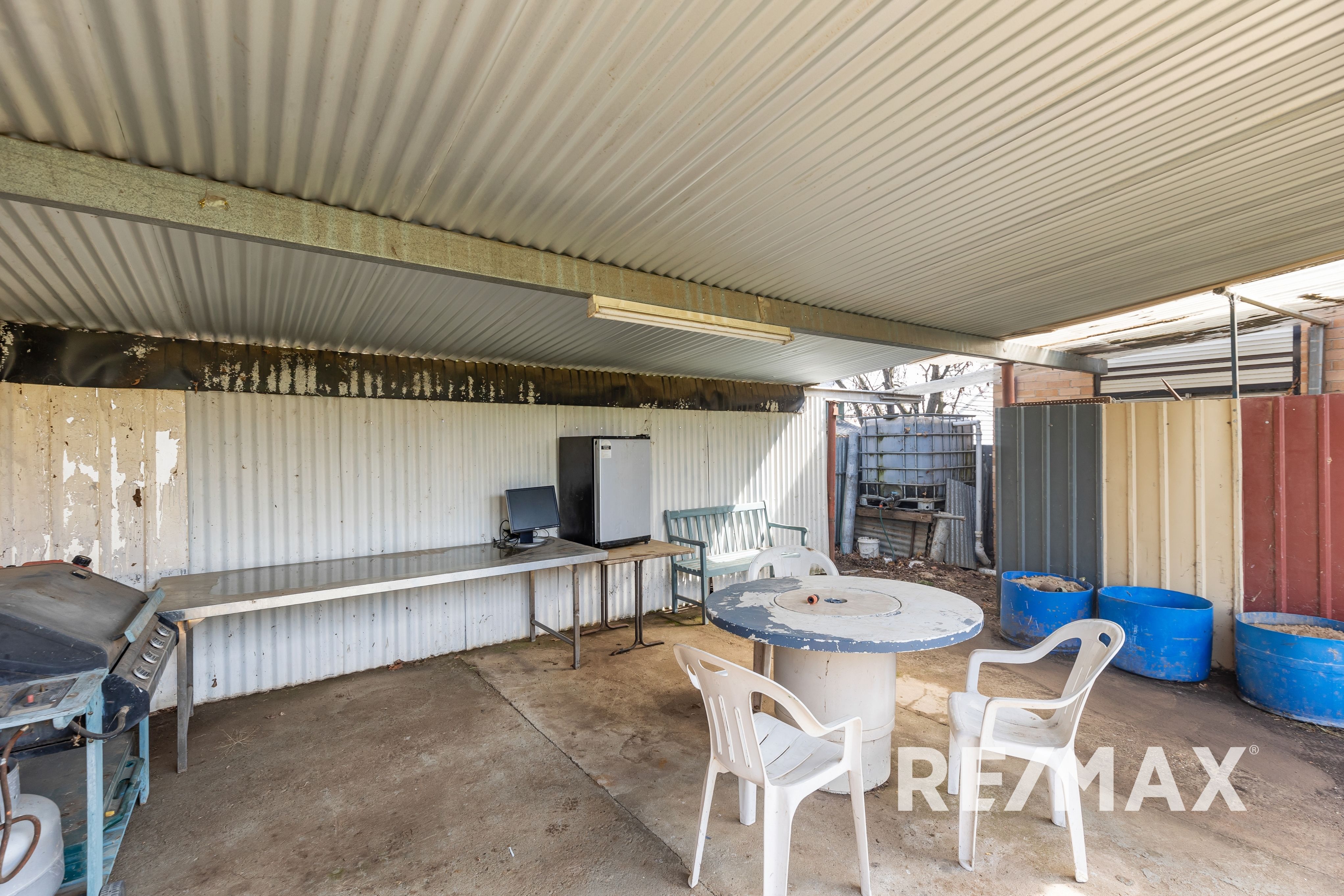 Outside, there is ample space for parking, with two spaces available, as well as room for caravan storage. A large shed, featuring a barbecue area, provides excellent additional storage or workspace.