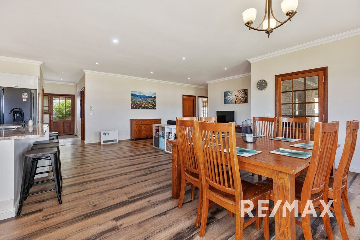 Each of the three additional bedrooms provides built-in robes and French doors opening onto the veranda, blending indoor comfort with outdoor tranquillity. Convenience is key with internal access to a double garage, featuring drive-through access to the backyard.