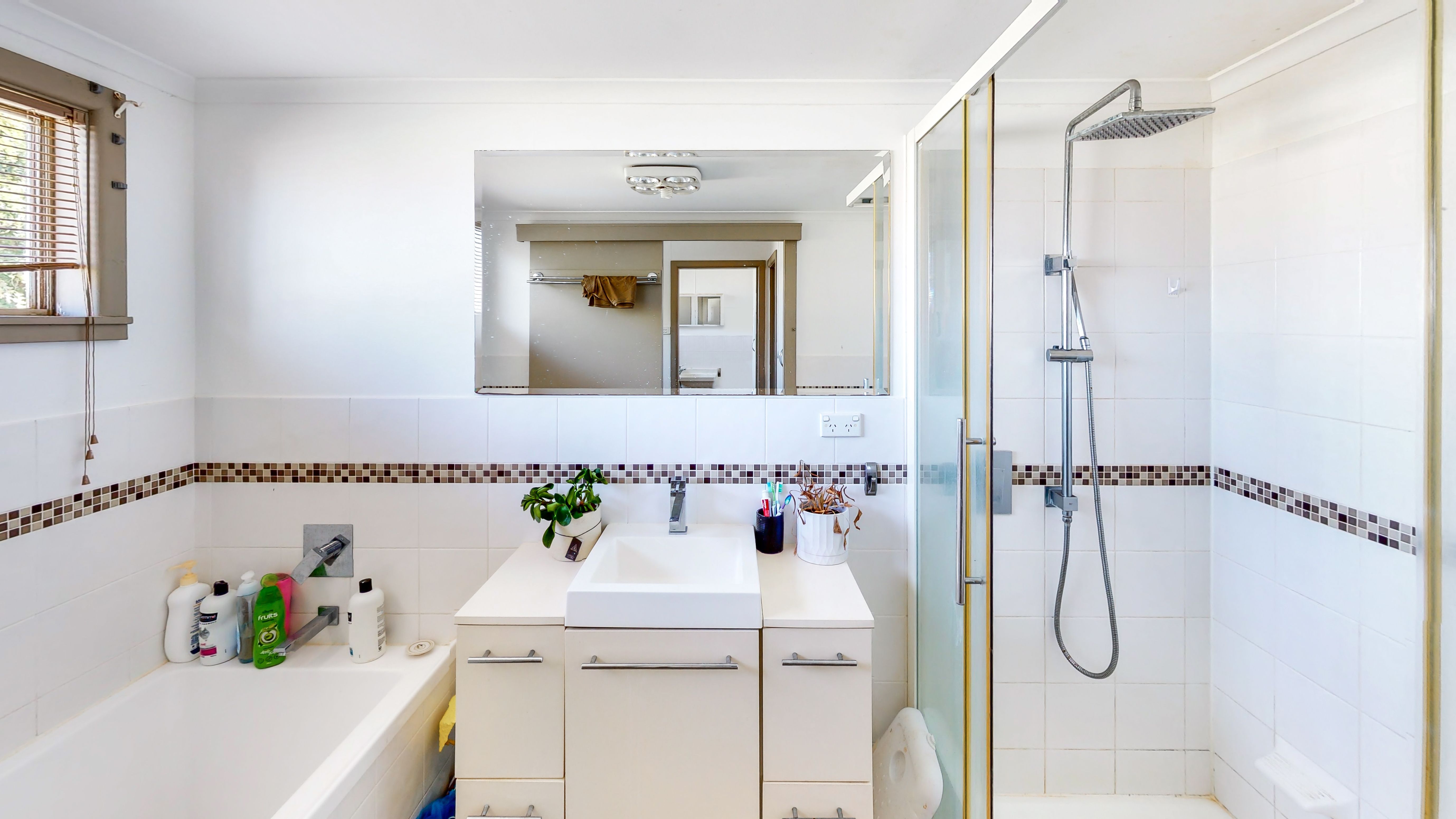 Modern bathroom will work for your family with large bath, corner shower and modern vanity flowing through to laundry, great storage and 2nd toilet