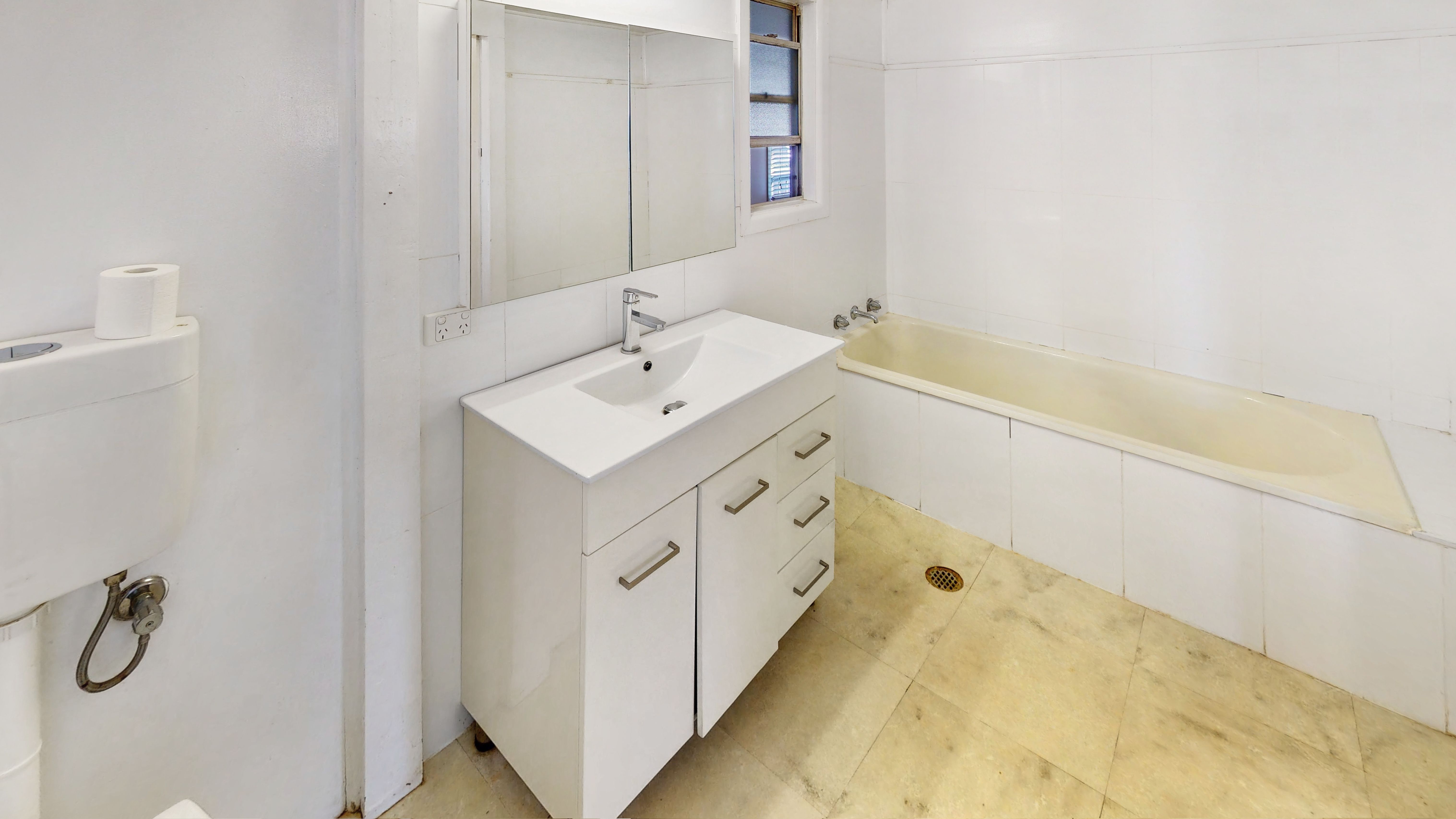 Main bathroom has had a makeover with modern tiles and vanity plus a separate shower.