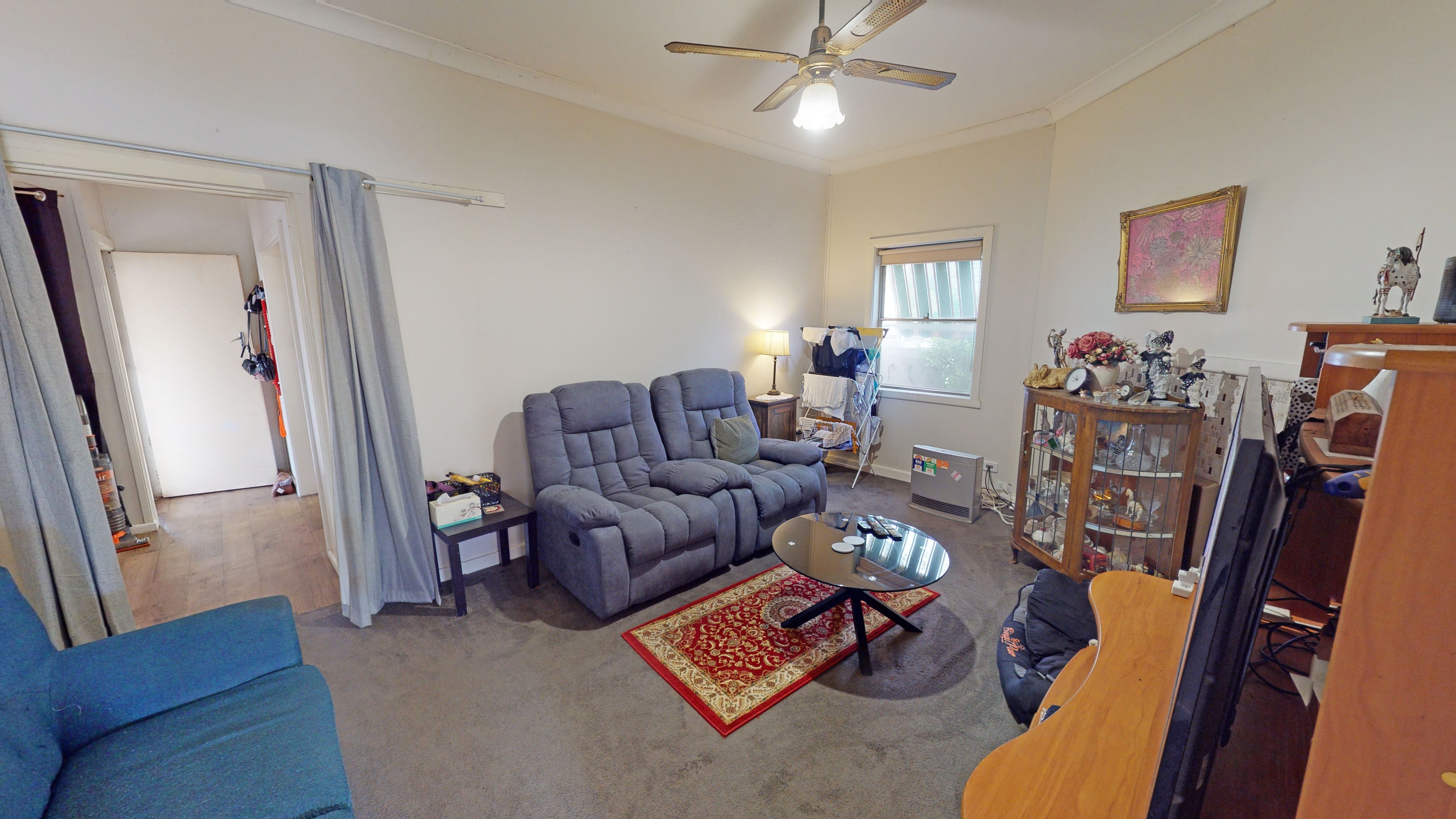 The loungeroom is the hub of the home featuring gas heating plus ducted evaporative cooling for year round comfort