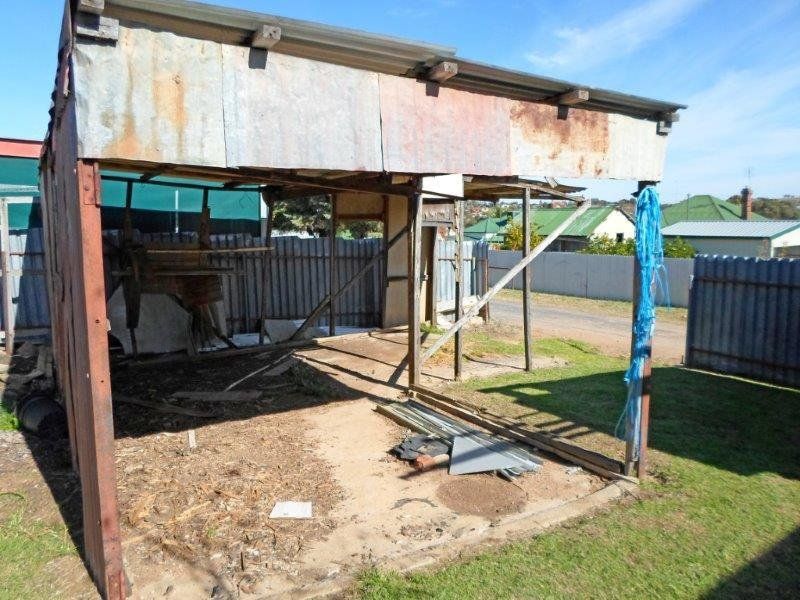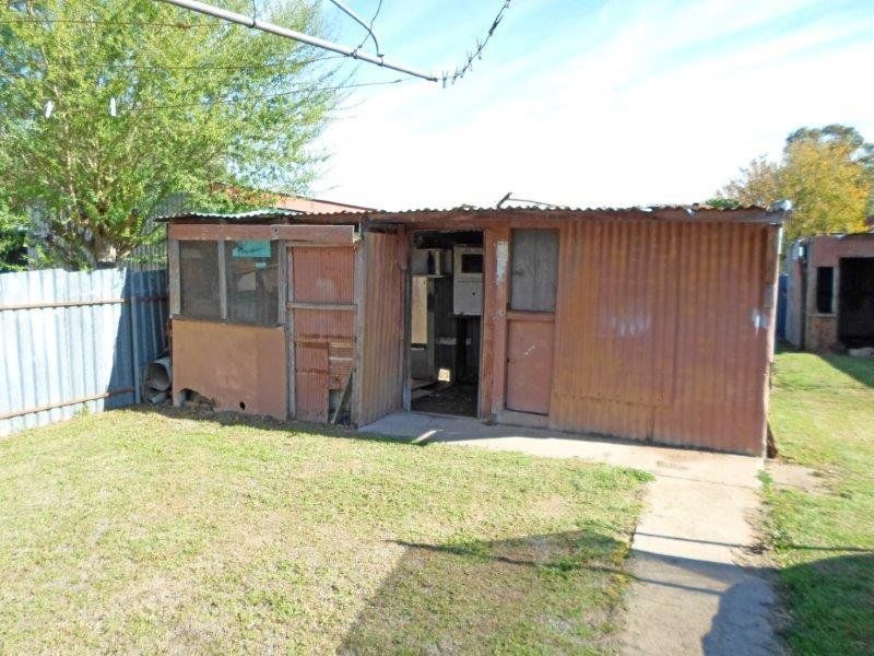This weatherboard residence offers huge scope to improve positioned in a popular street of Junee. Once an old railway cottage, this fabulous opportunity allows you to enter the market TODAY. Central hallway, timber boards, high ceilings & two bedrooms with the main featuring a WIRSpacious eat-in kitchen with ample bench and cupboard space overlooking a separate living room. Wood fire and 2 gas bayonets for heating! Corrugated iron and a claw bath featured in the bathroom with a separate toilet for convenience. There is another two rooms at the end of the home ideal for storage and a laundry as the plumbing is available.