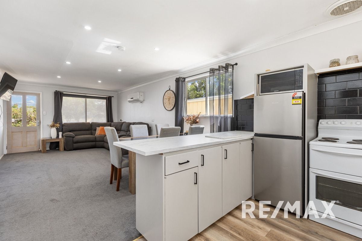 Step into the realm of homeownership with an exceptional opportunity to acquire this recently refreshed abode. This property presents a seamless blend of comfort and contemporary design, offering a lifestyle of ease and convenience.The property unfolds into a welcoming open plan lounge, kitchen and dining area, adorned with a Kelvinator split system and gas bayonet ensuring your comfort across all seasons. Culinary enthusiasts will delight in the modern kitchen, boasting a Westinghouse electric stove with a 4 burner cooktop, sleek laminate benchtops, striking matt black double sink set against a fashionable black tile splashback. New laminate flooring underfoot adds to the home's fresh appeal.