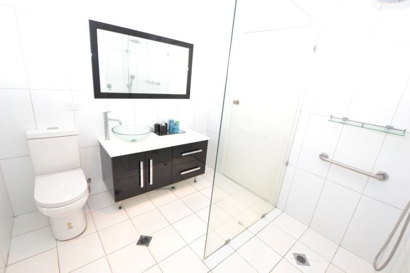 A stunning modern bathroom only 2 years old that is eye catching! Black and white featuring quality inclusions to excite
