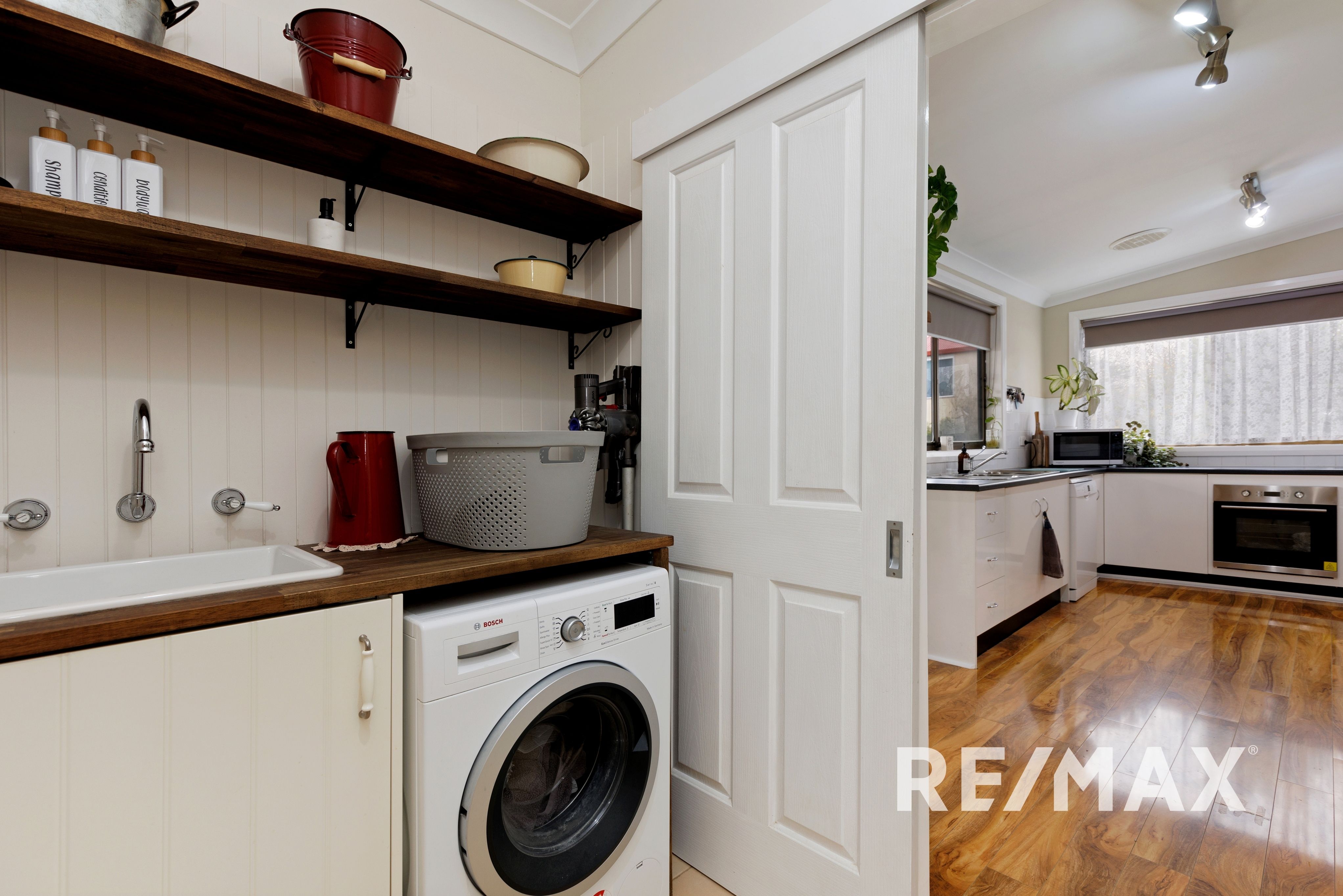 The heart of this home is undoubtedly the open-plan kitchen, dining, and lounge area, where a modern Bellini oven, ceramic cooktop, and Bosch dishwasher sit elegantly against the laminate benchtops. A split system & evaporative cooler provides optimal heating and cooling for year-round comfort.