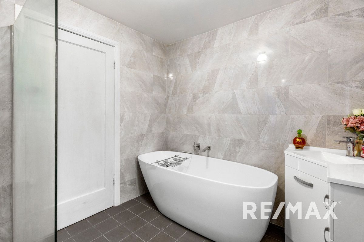 All bedrooms are spacious and boast decorative ceilings and ceiling fans, with built-in robes in two of the rooms and a Mitsubishi split system air conditioner in the master bedroom. The bathroom is elegantly appointed with floor-to-ceiling tiles, a free-standing bath, and walk-in shower.