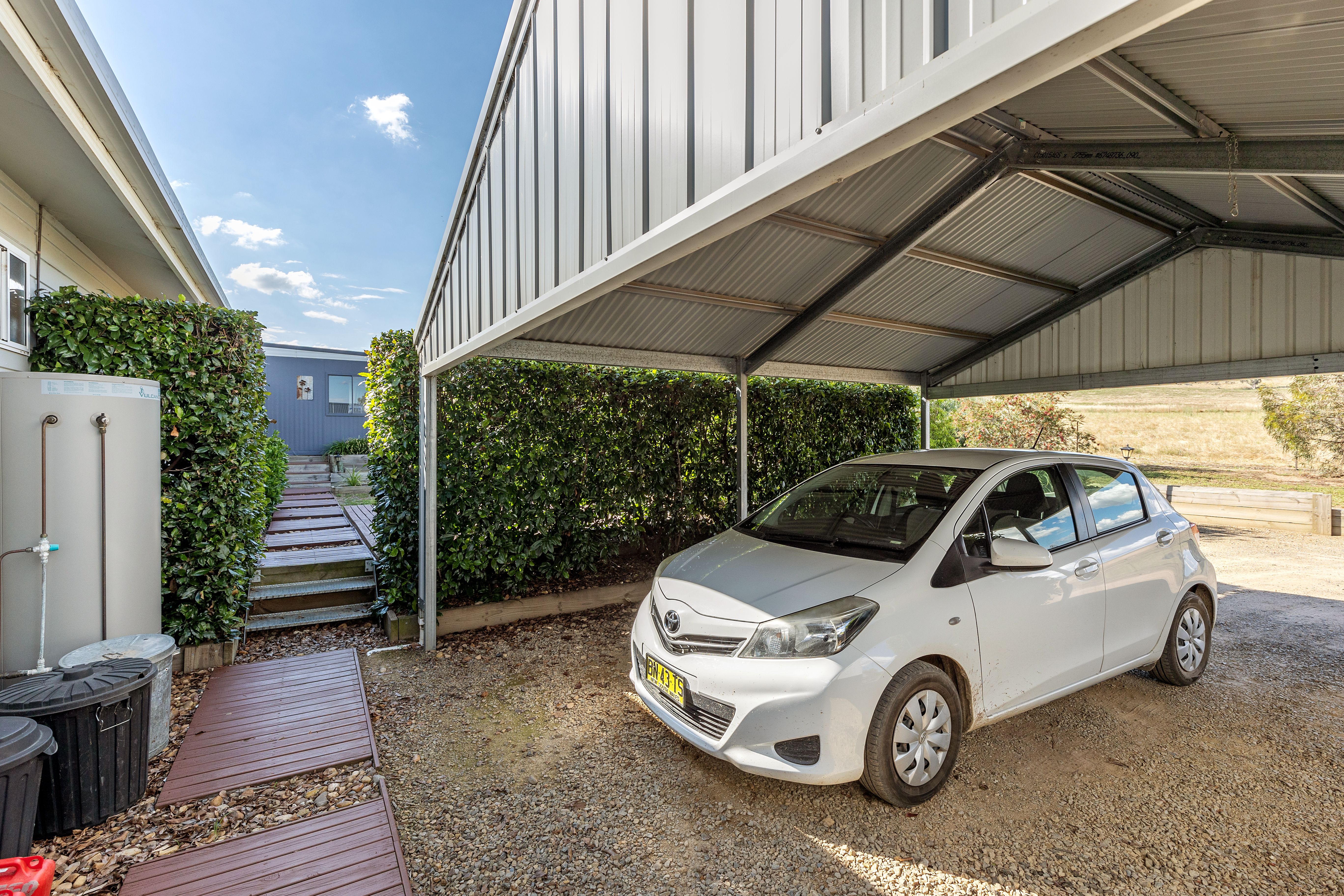 Enjoy the benefits of 2 large tanks, septic, great exterior fencing plus a double carport at the house and a 3rd carport on entry to the property