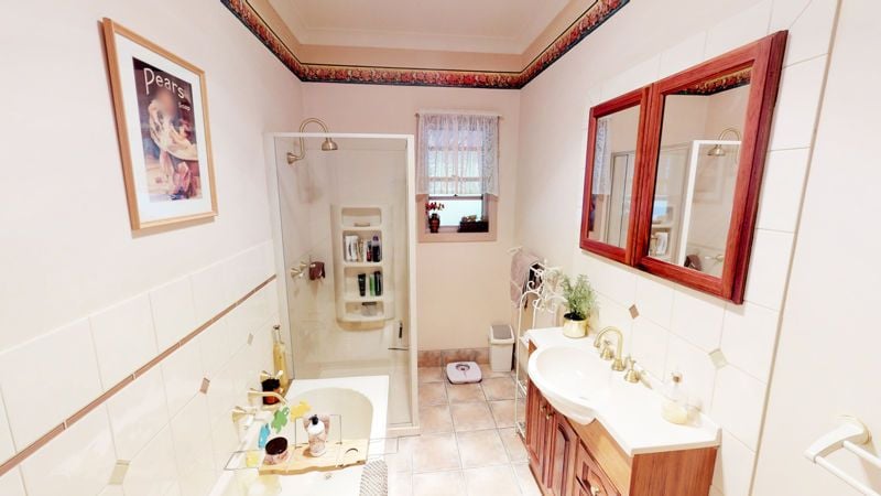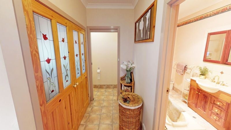 Lovely bathroom with bath, shower and a separate toilet. European laundry tucked away with beautiful timber doors