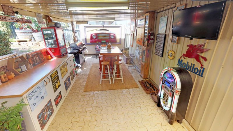 Enjoy a 10 by 4.5m powered shed with electric roller door, outside toilet and vanity