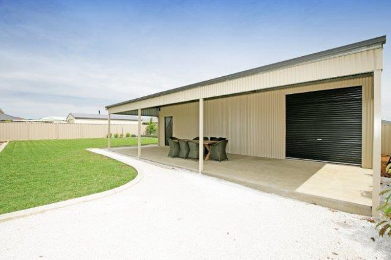 Massive 6 x 12 meter shed with power and roller door access opening out to a large 4 x 12 meter alfresco living separate to the outdoor living of the house - one for an entertainer