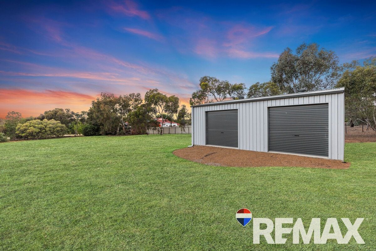 Practicality is well considered, with a massive double garage featuring electric roller doors, a garden shed, and a brand-new 8x7 metre shed positioned at the rear of the property for additional storage or workspace.