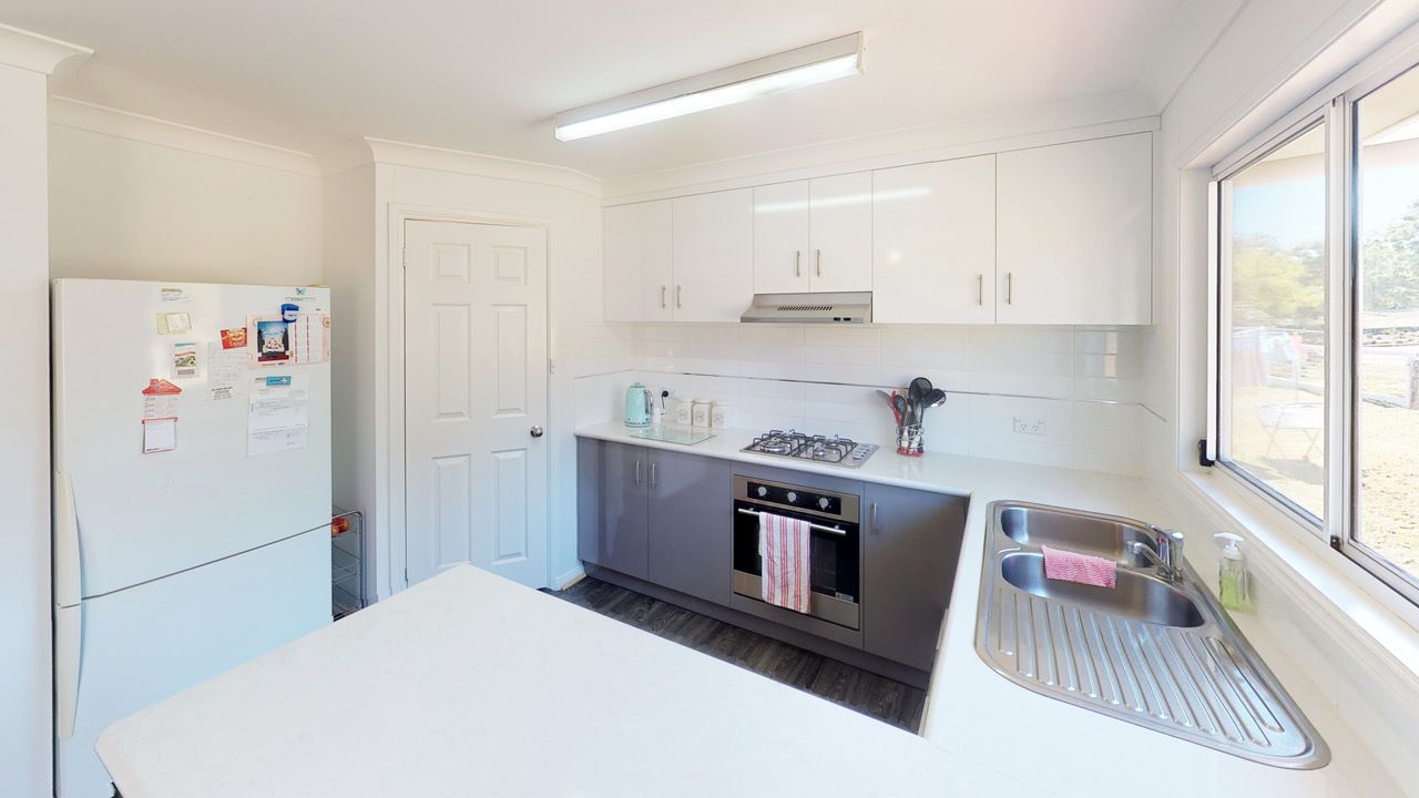 A beautifully presented home featuring light filled open plan living and long verandahs front and back for shade and relaxing. All bedrooms have built in robes and are a great size and stem off a central hallway. The 3 way Bathroom is stylish with stunning feature tiles and laundry has access to the outdoors. Large open plan living, kitchen & dining area features vinyl strips and plush carpet and flows to a rear verandah.The kitchen is the heart of the home and features a gas cooktop, electric oven, dishwasher and corner pantry with lovely views of the countryside from the large window.
