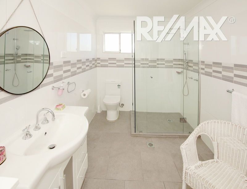 Bathroom is magic with space and style mixed providing a colour pallet that's soft on the eye and a 2nd toilet in the laundry for convenienceÂ