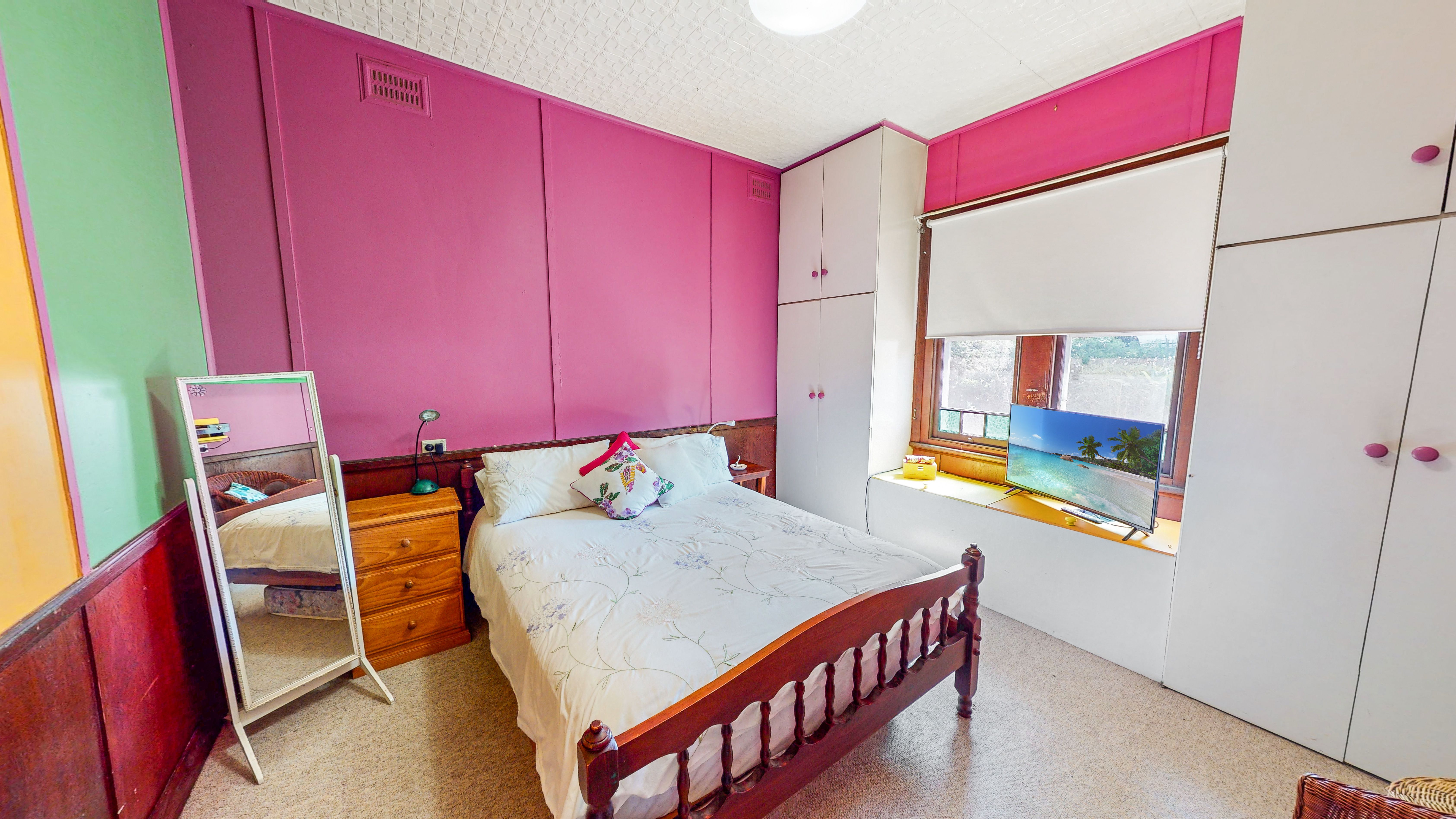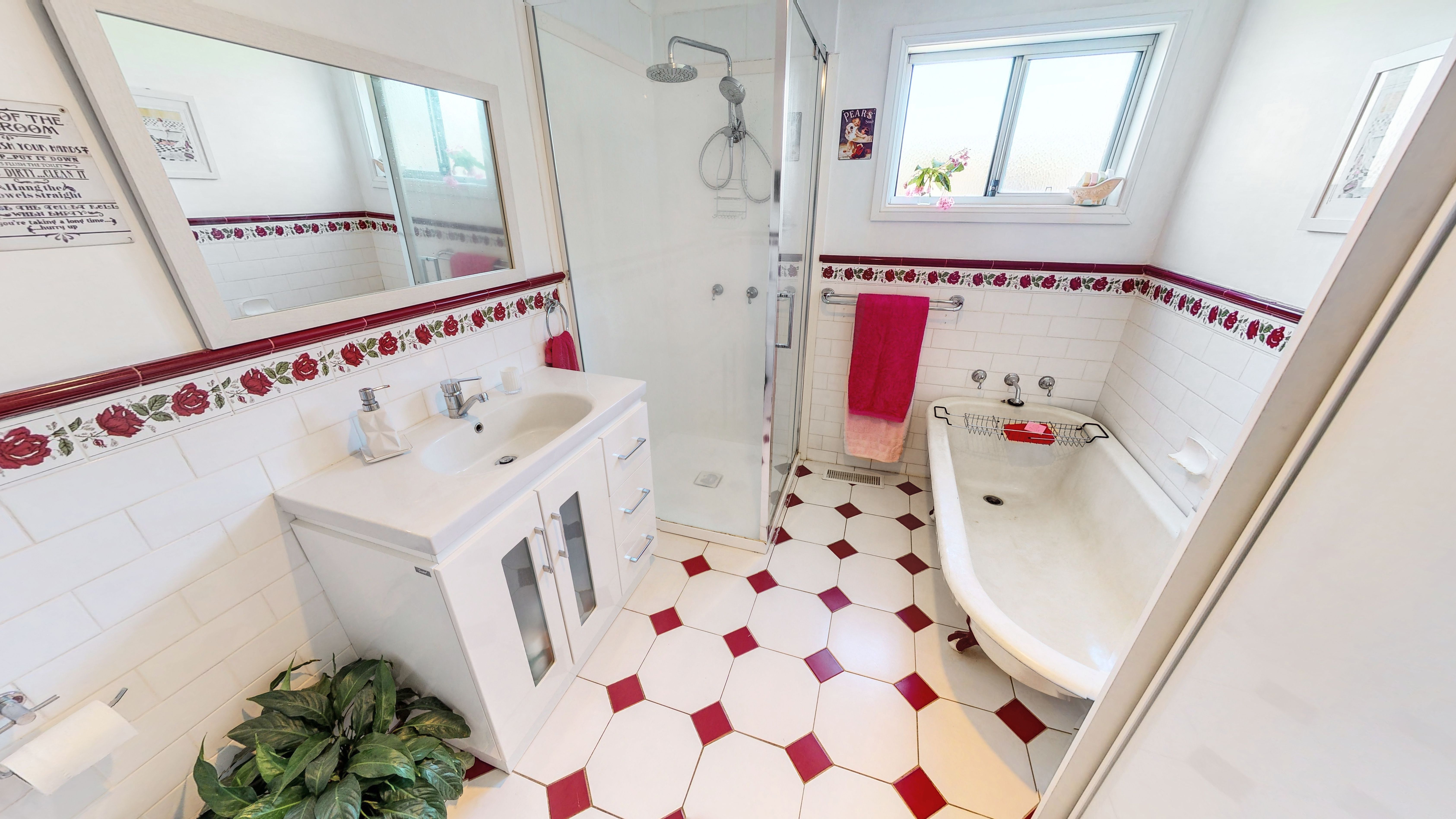 Bathroom is charmed with federation tiles, claw bath and modern finishes plus additional storage for practicality.