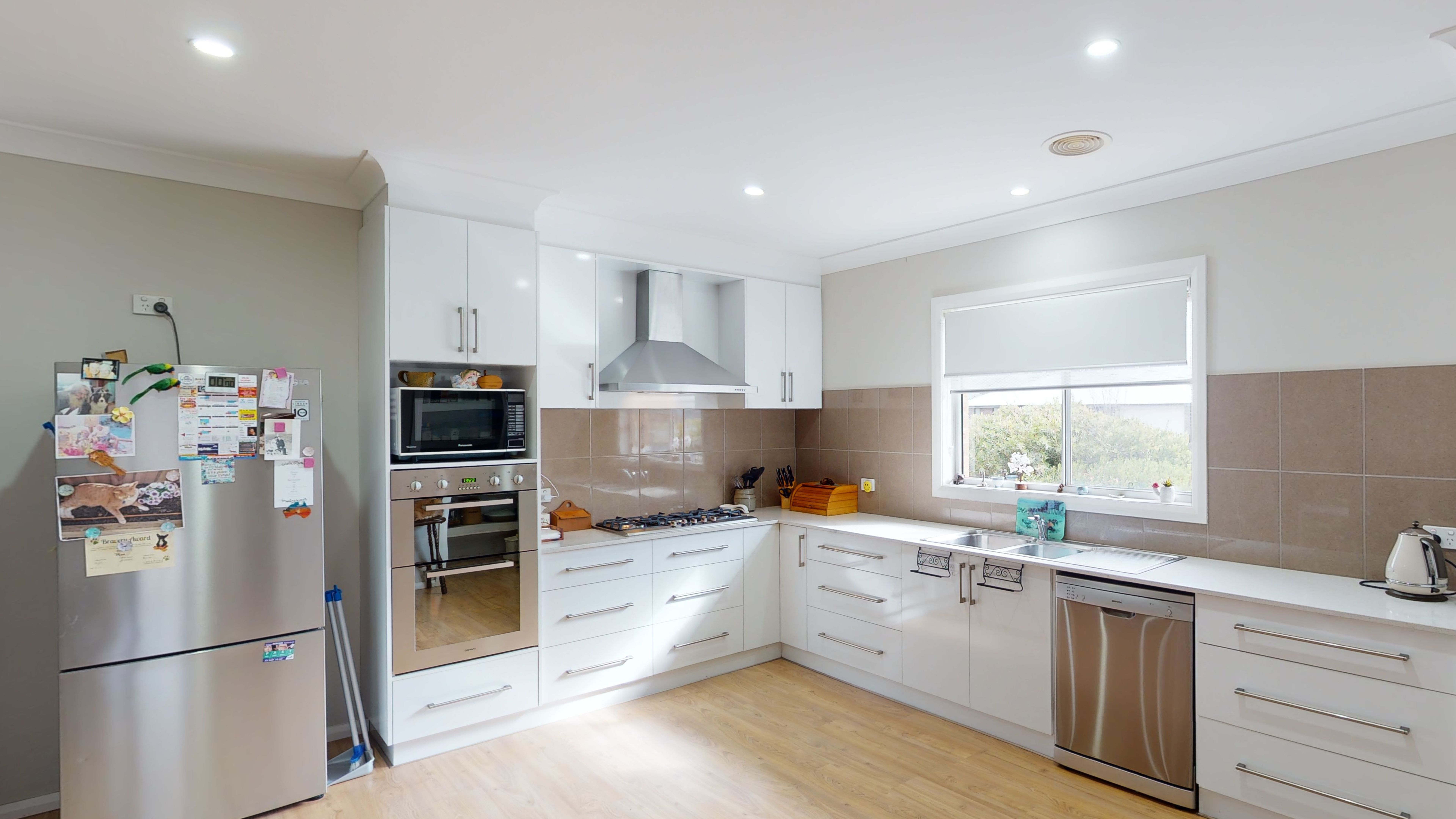 Kitchen invites the family in with a great walk in pantry, stone bench tops, gas cooktop and electric oven.