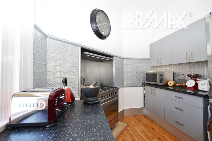 The stylish kitchen features stone benches and a timeless press metal splashback. The chef will be thrilled with a large freestanding 6 burner gas oven, dishwasher and an abundance of storage with self-closing draws