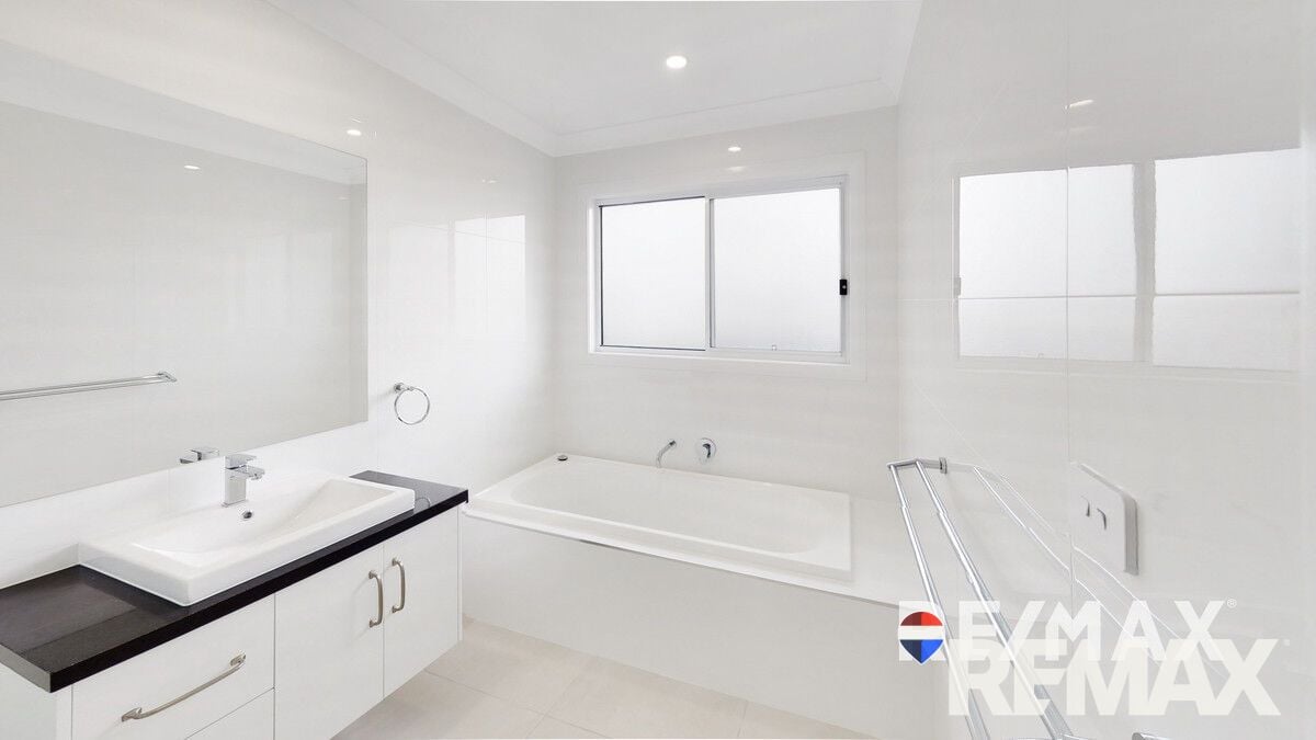 Main bedroom features 2 sets of robes and a spacious en-suite. The bathroom is spacious with floor to wall tiles plus great storage options