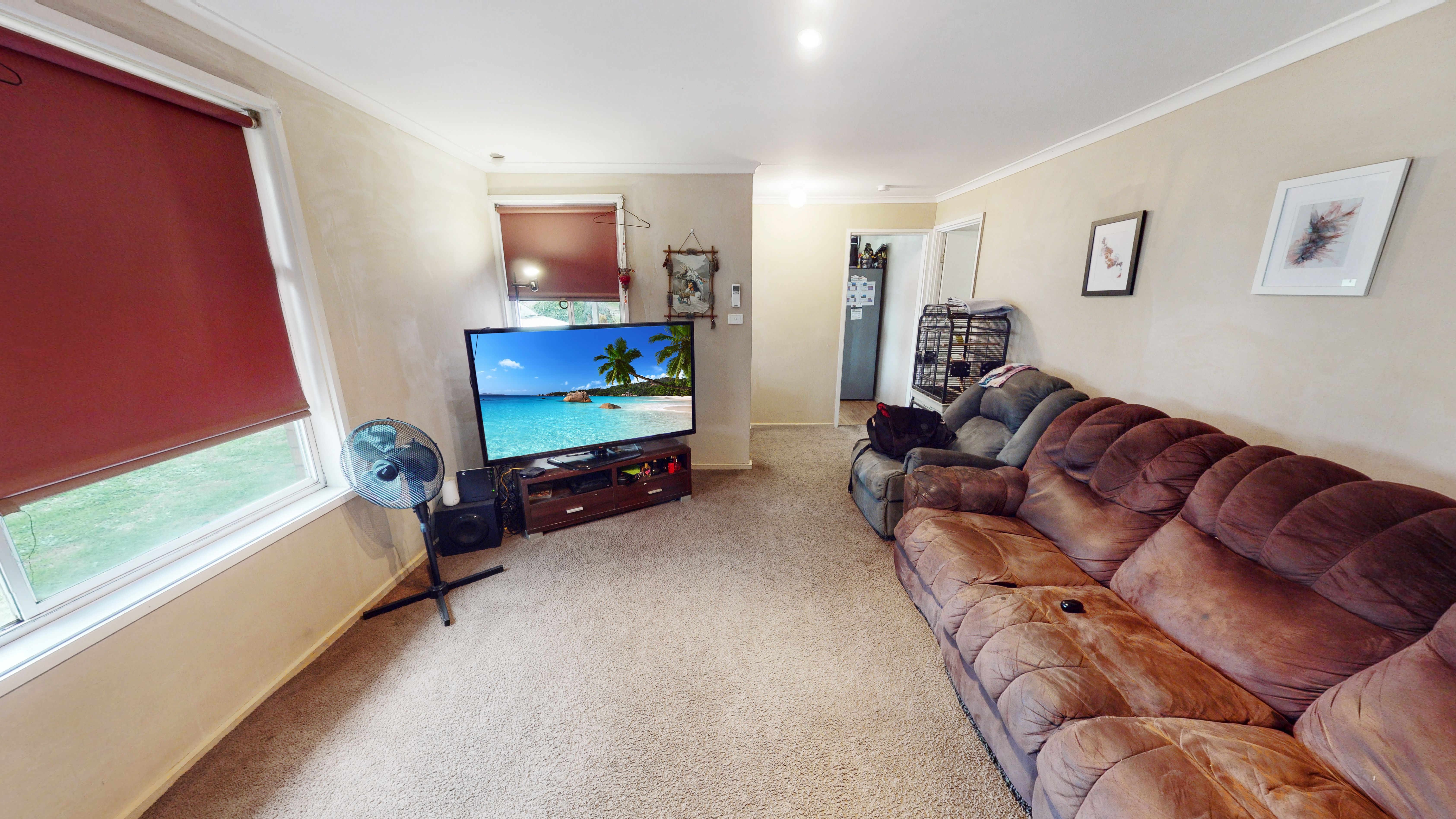 The central hallway leads to three bedrooms, main bathroom and laundry with external access.