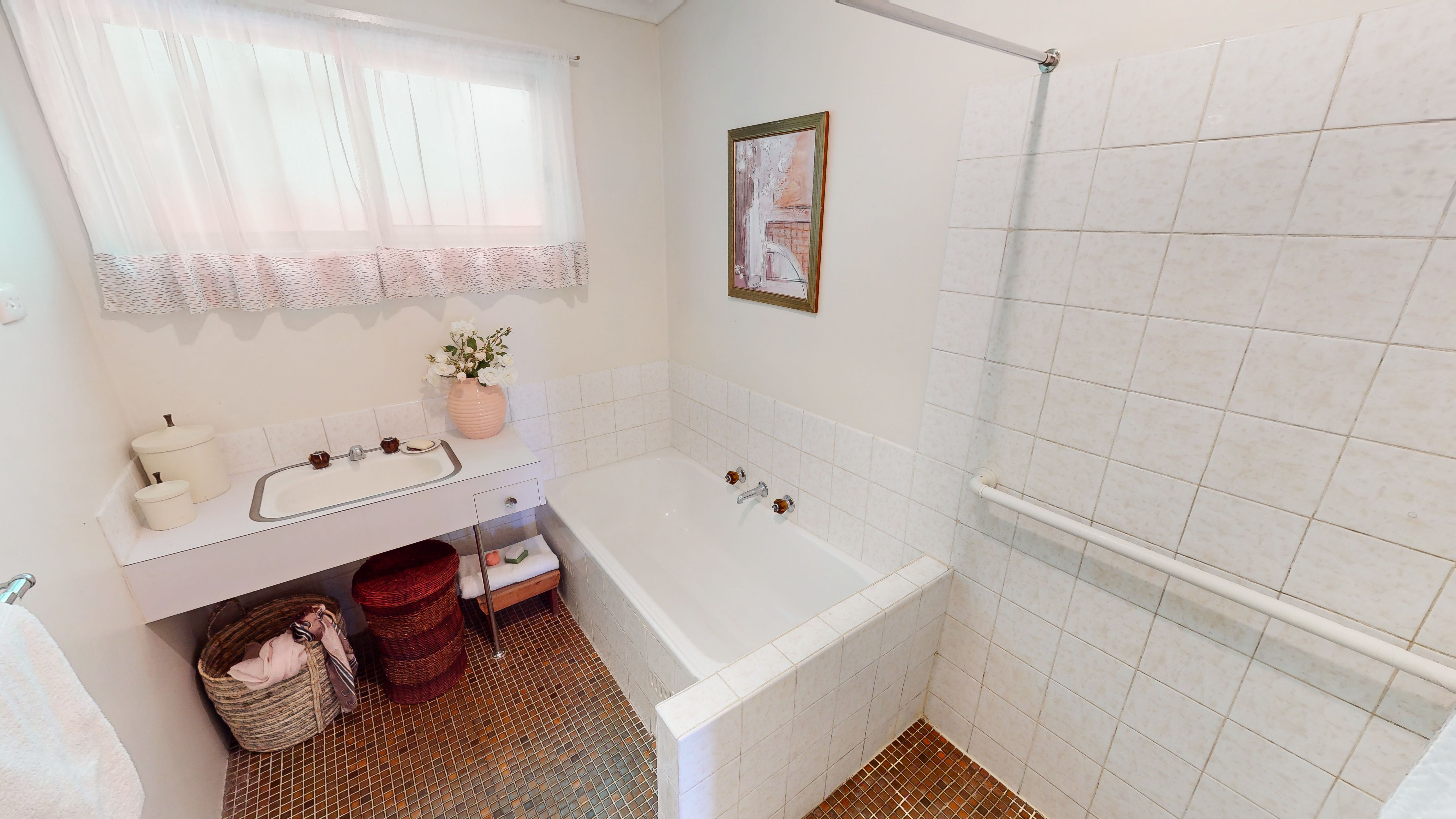 The bathroom has enjoyed minor improvements but provides a lucky homeowner the opportunity to move in and unpack.