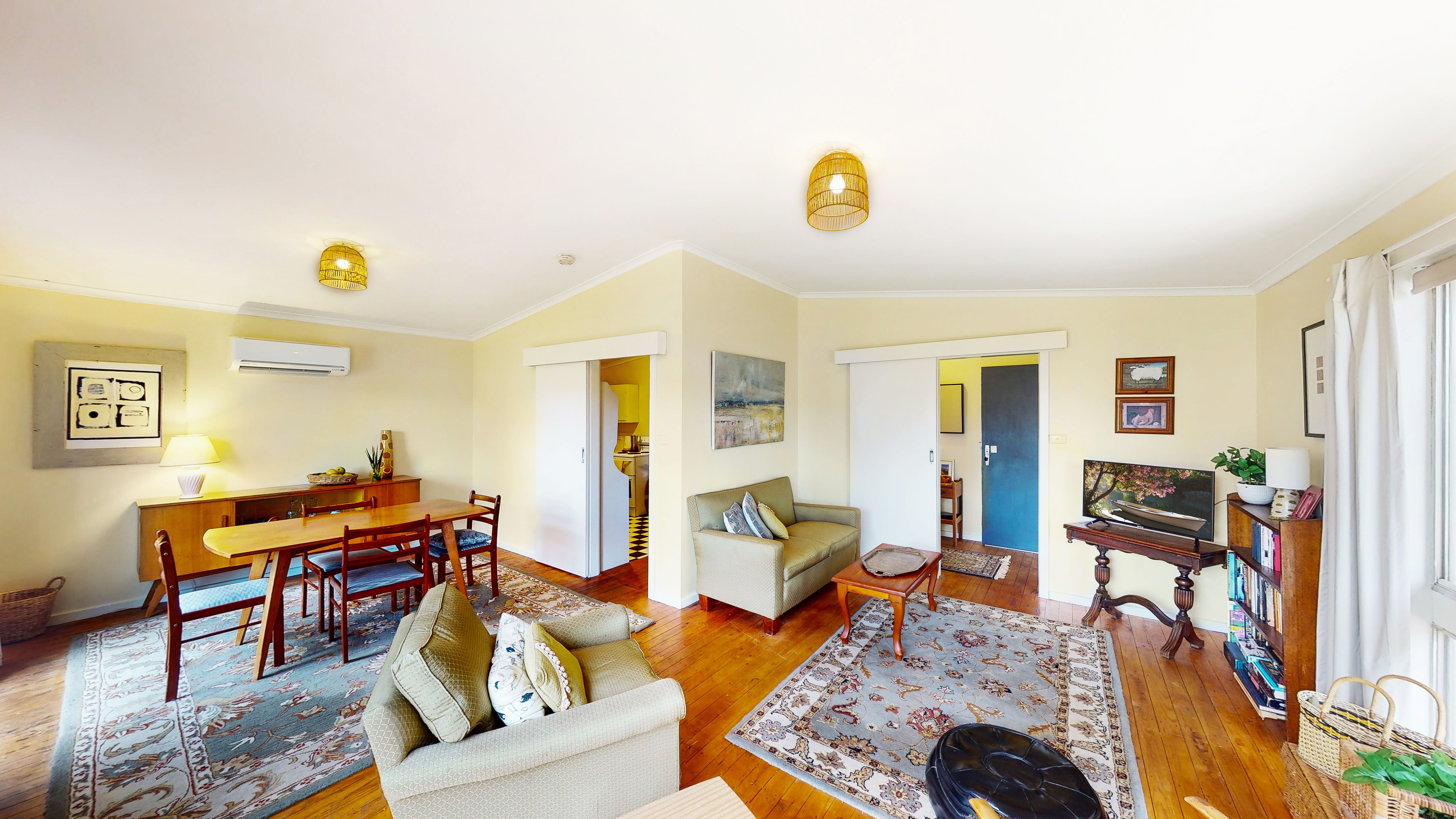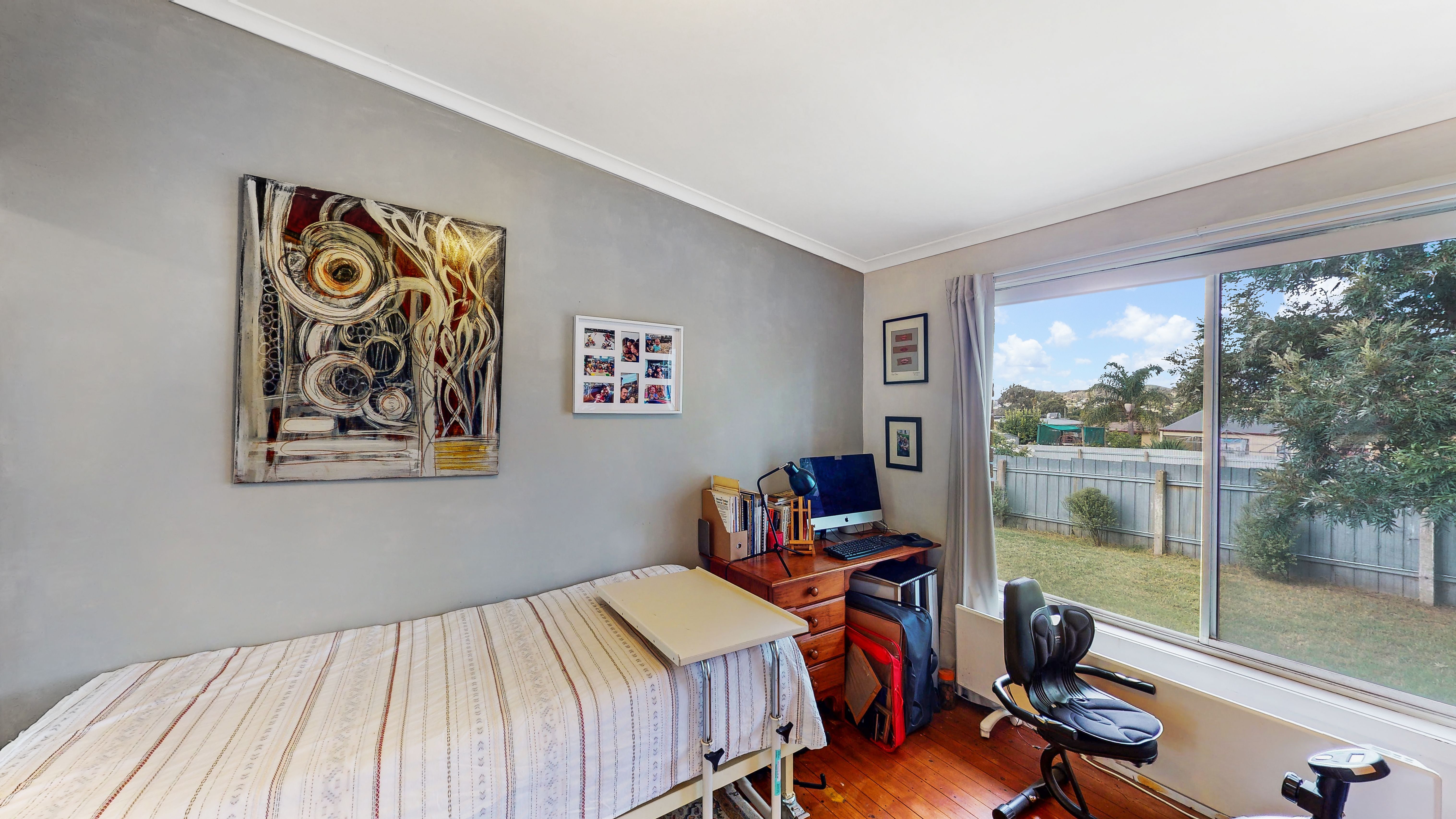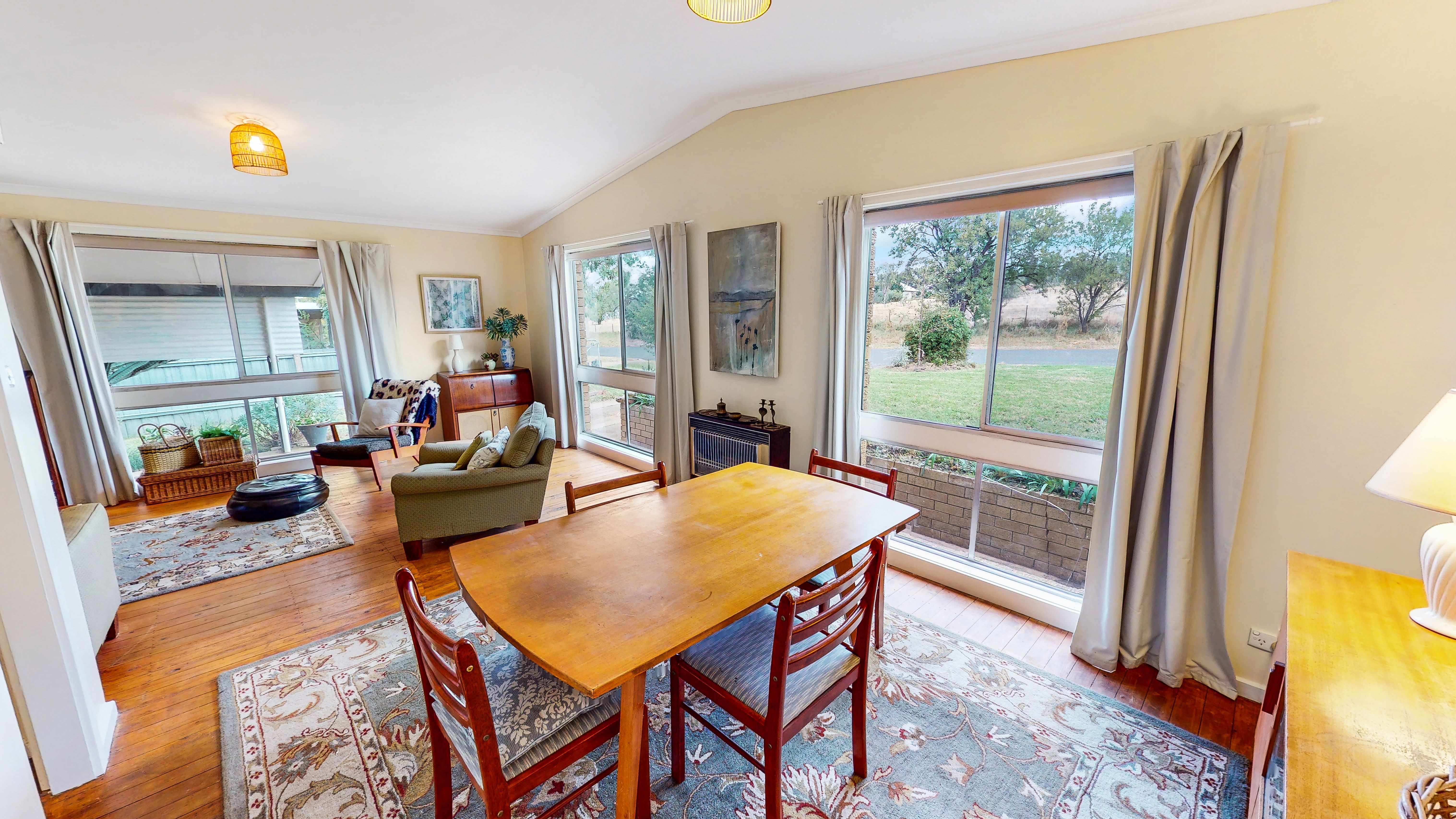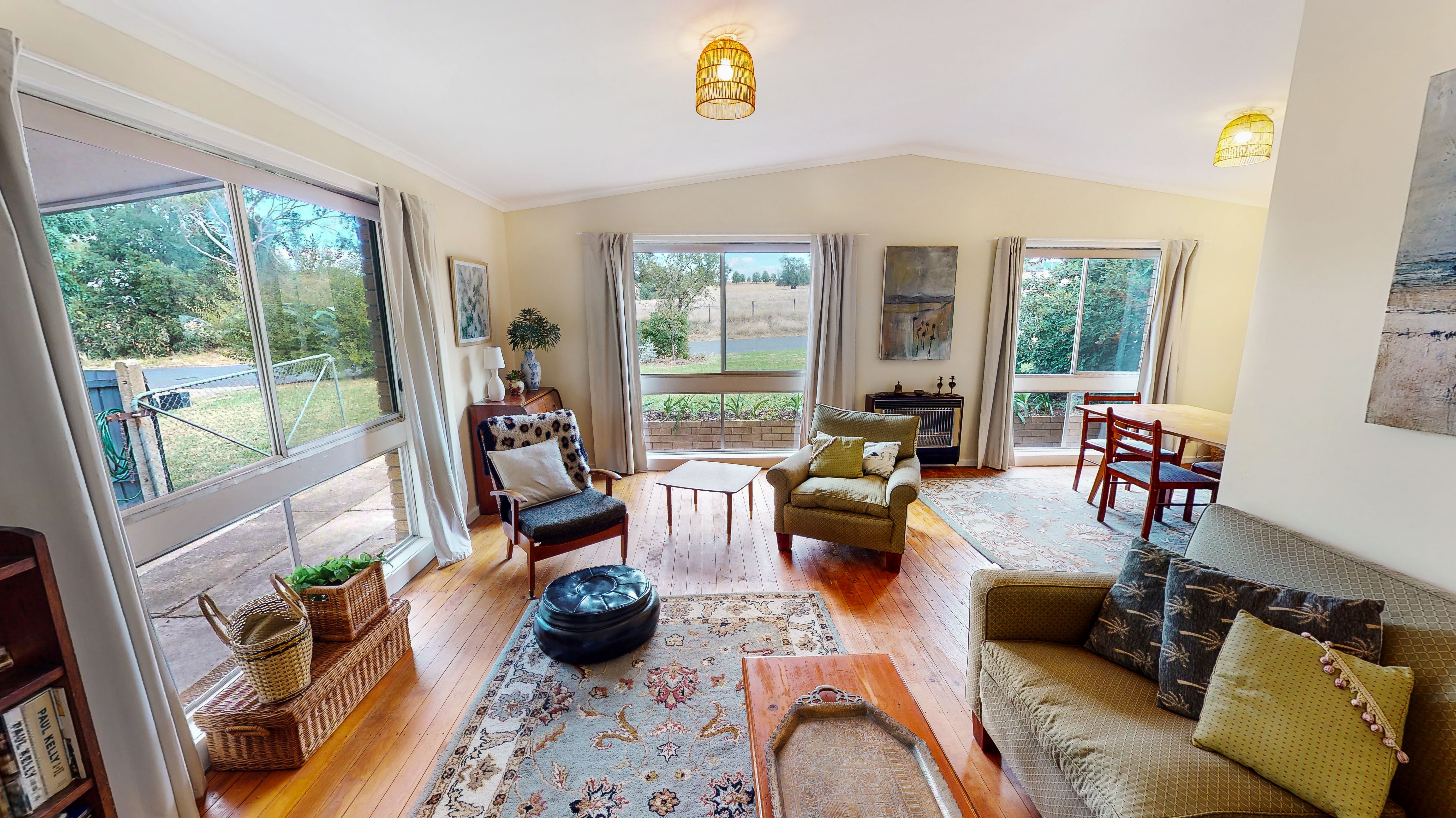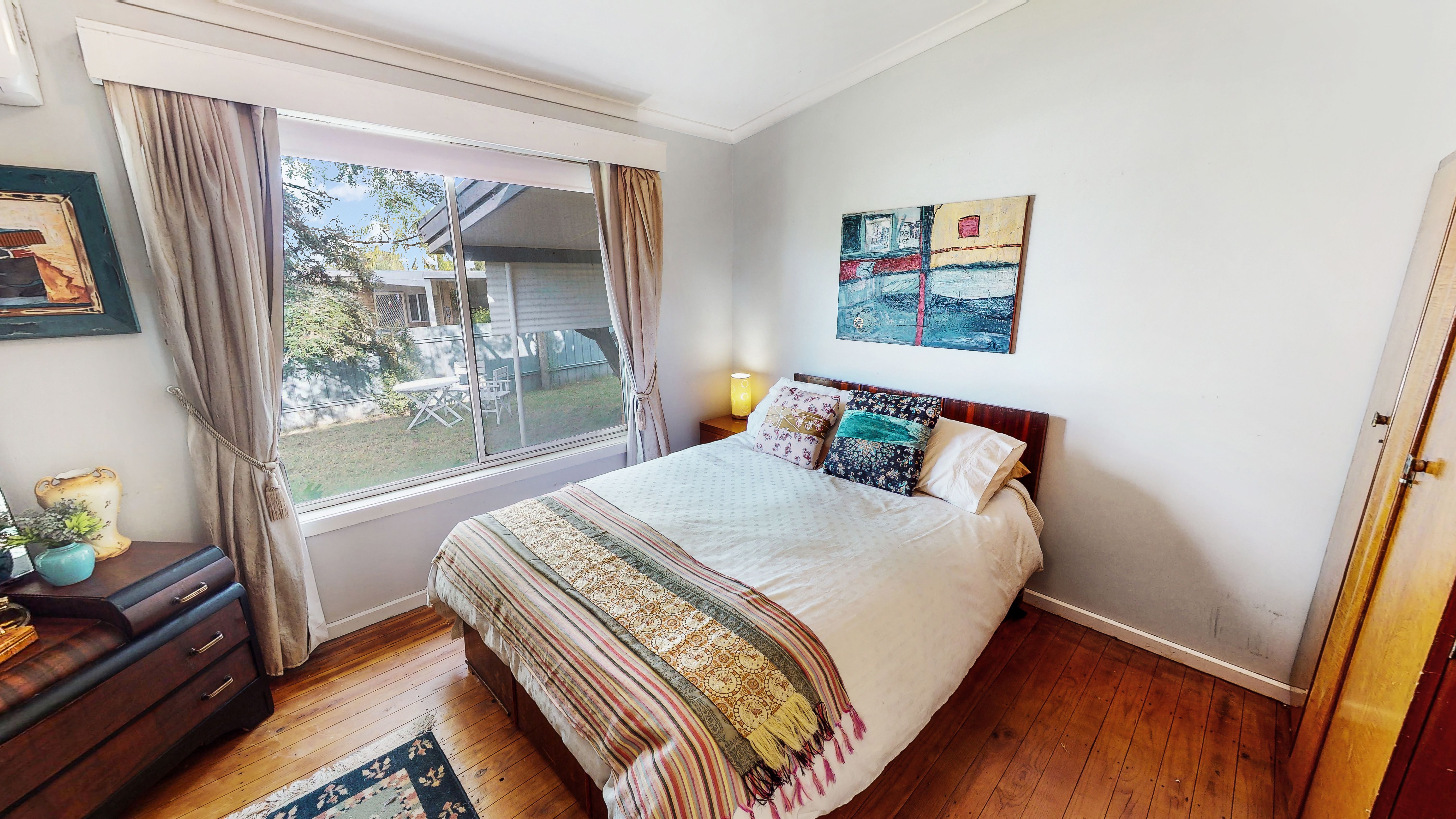 With the warmth of timber floors and bathed in natural light, the L shaped living zone also features a reverse cycle split system and soft window furnishings.