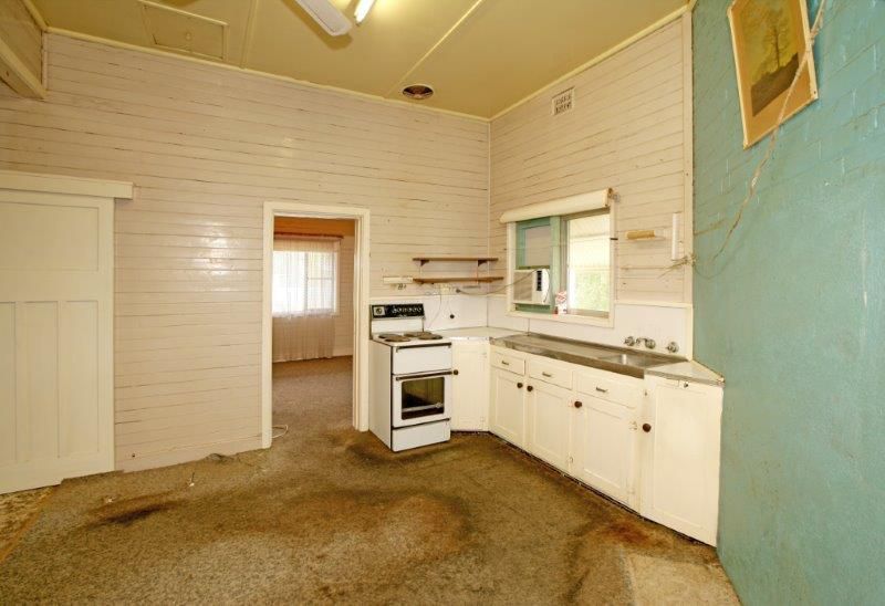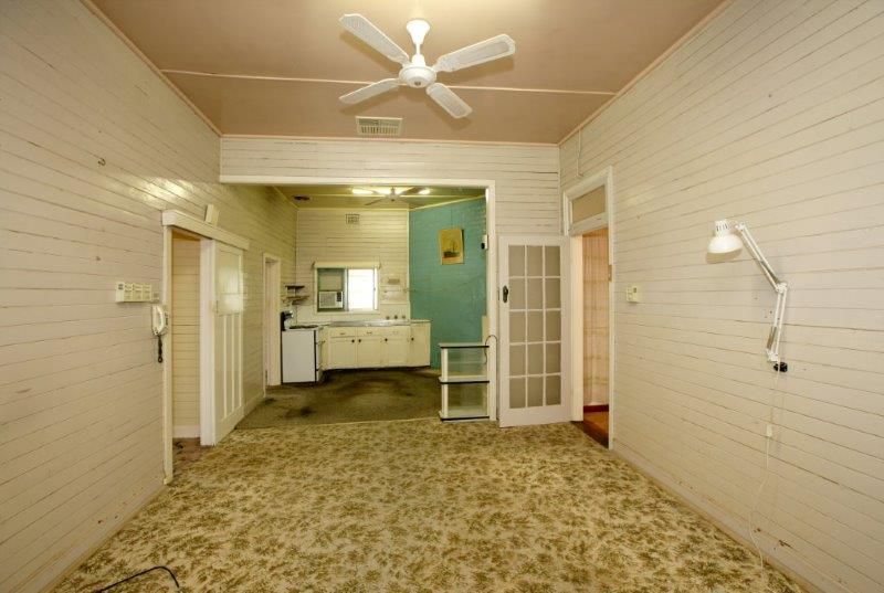 Open plan kitchen, dining and lounge room with a wall AC for cooling... In need of a handy Andy, bring this residence back to life