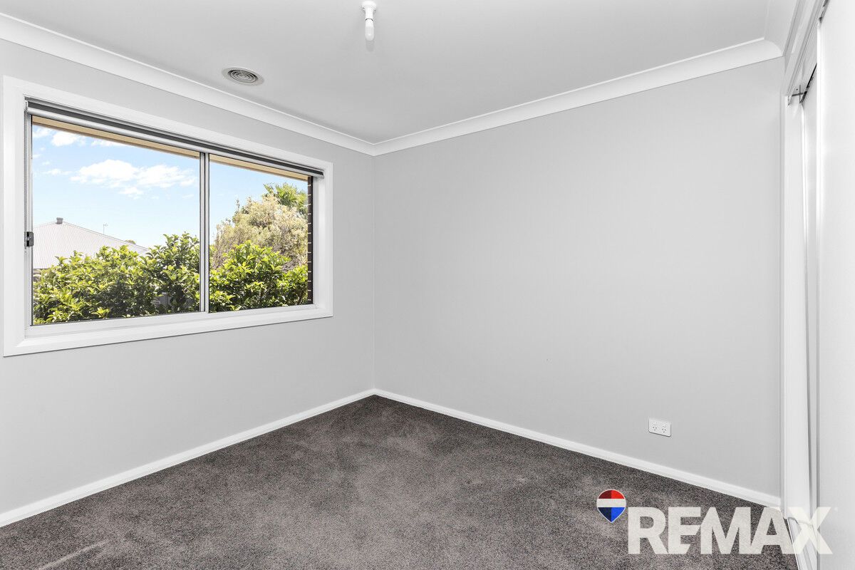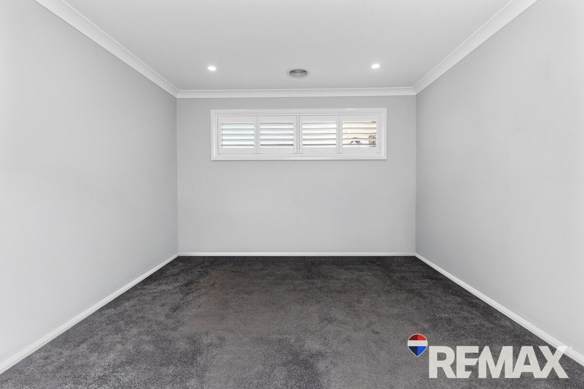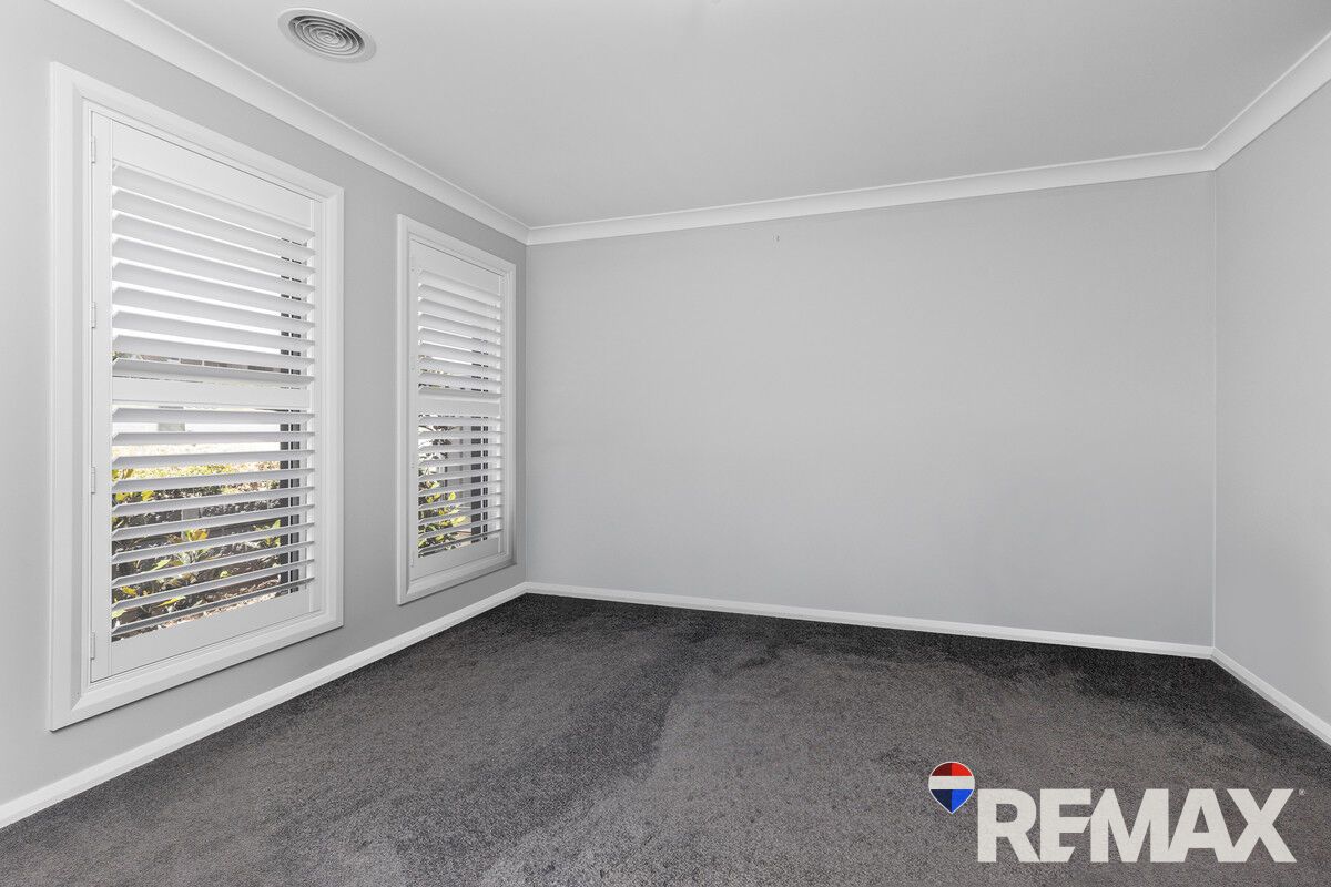 The kitchen is a standout, boasting stone benchtops, an induction cooktop, dishwasher, and a walk-in pantry for effortless storage. The master suite offers a peaceful escape with a walk-in robe, ensuite, and plantation shutters, creating a touch of luxury. Year-round comfort is assured with ducted gas heating and evaporative cooling throughout.