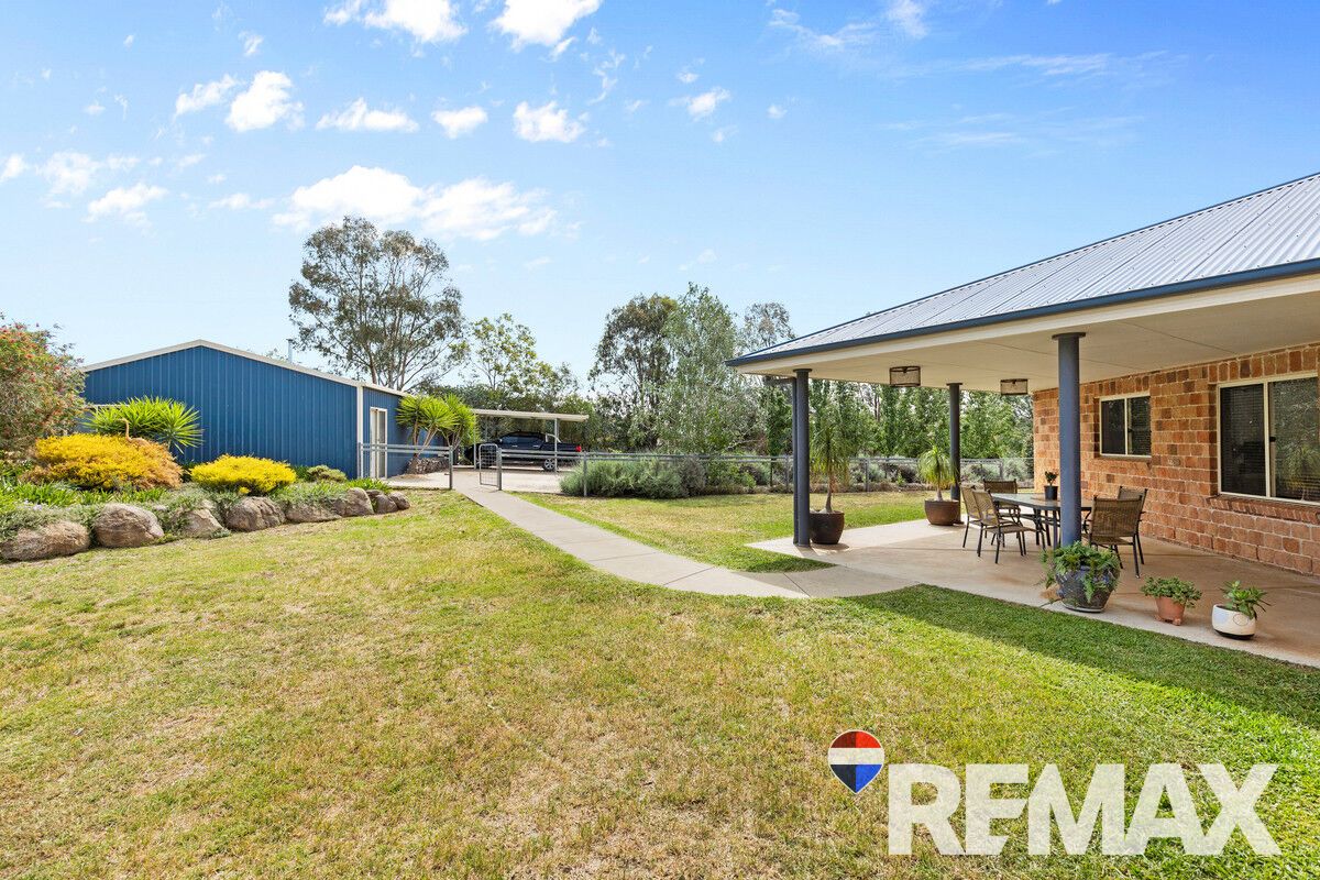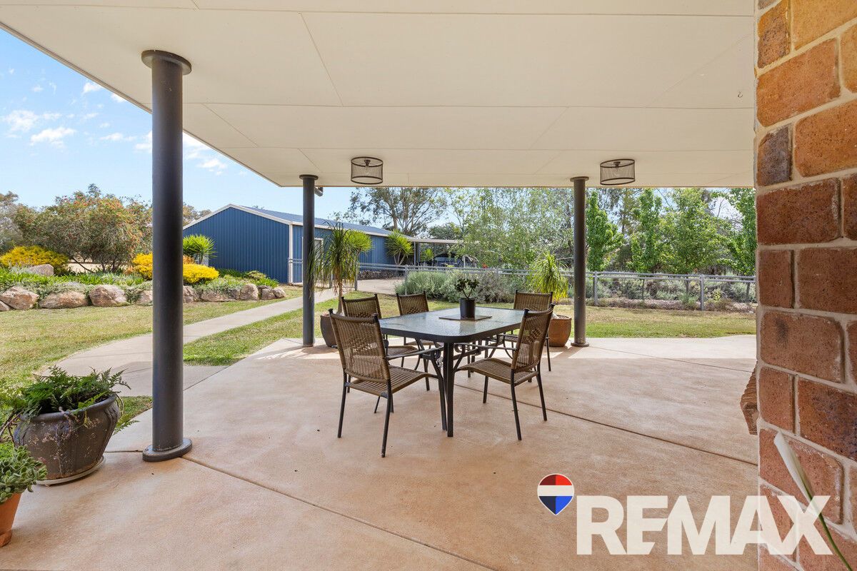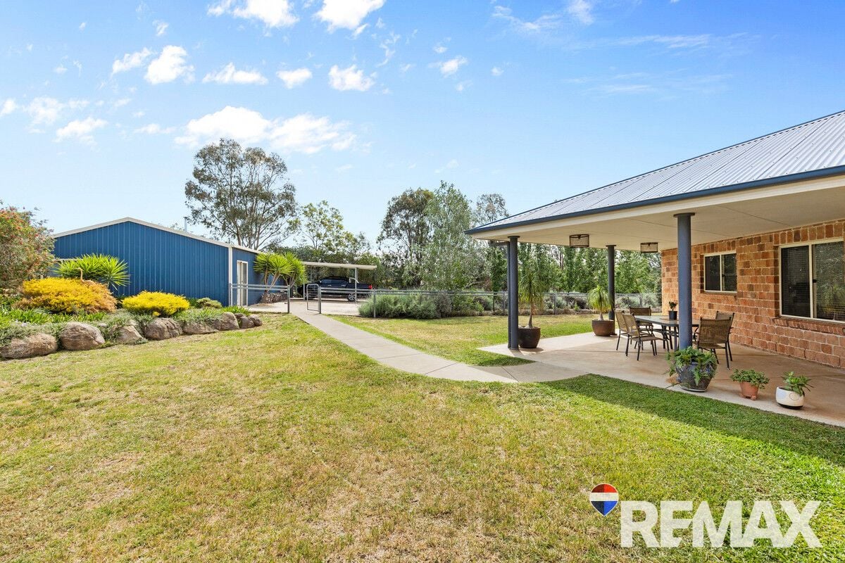 Set on a generous 7,395m² parcel of land zoned Large Lot Residential, this stunning property offers the perfect blend of privacy and modern comfort, surrounded by quality acreage homes. Enter through the front door and be greeted by freshly painted interiors, crisp and inviting, complemented by soaring 2.7-metre ceilings that create a sense of space throughout the open-plan living areas. The spacious lounge room overlooks the secluded backyard, while the kitchen forms the central hub of the home, featuring marble-look laminate benchtops, sleek cabinetry with brushed gold handles, a brand-new oven and dishwasher, and a 4-burner gas cooktop. From here, the living area flows seamlessly to an outdoor alfresco space, ideal for entertaining or relaxing in the fresh country air.A wide hallway leads to three bedrooms and the main bathroom, which includes a separate toilet for convenience. At the end of the home, the private master suite boasts a walk-in robe and ensuite, offering a peaceful retreat. The laundry provides external access, and the double garage offers internal entry for added practicality. Year-round comfort is assured with gas ducted heating and evaporative cooling.