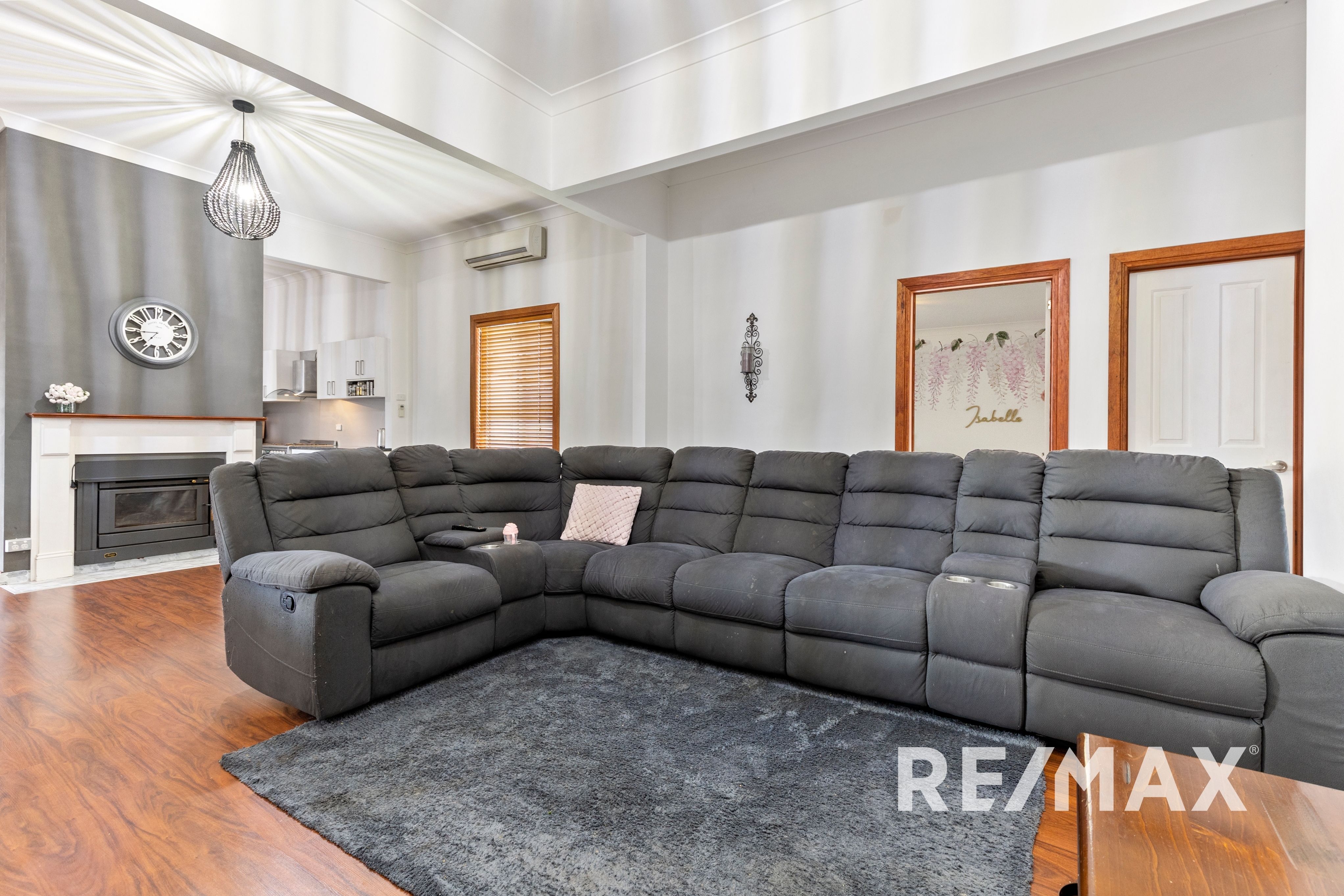 The kitchen also features plenty of cupboard and bench space including stylish laminate benchtops. The spacious family and meals area highlights the timber look laminate flooring and woodfire with impressive hearth are at the heart of the home.