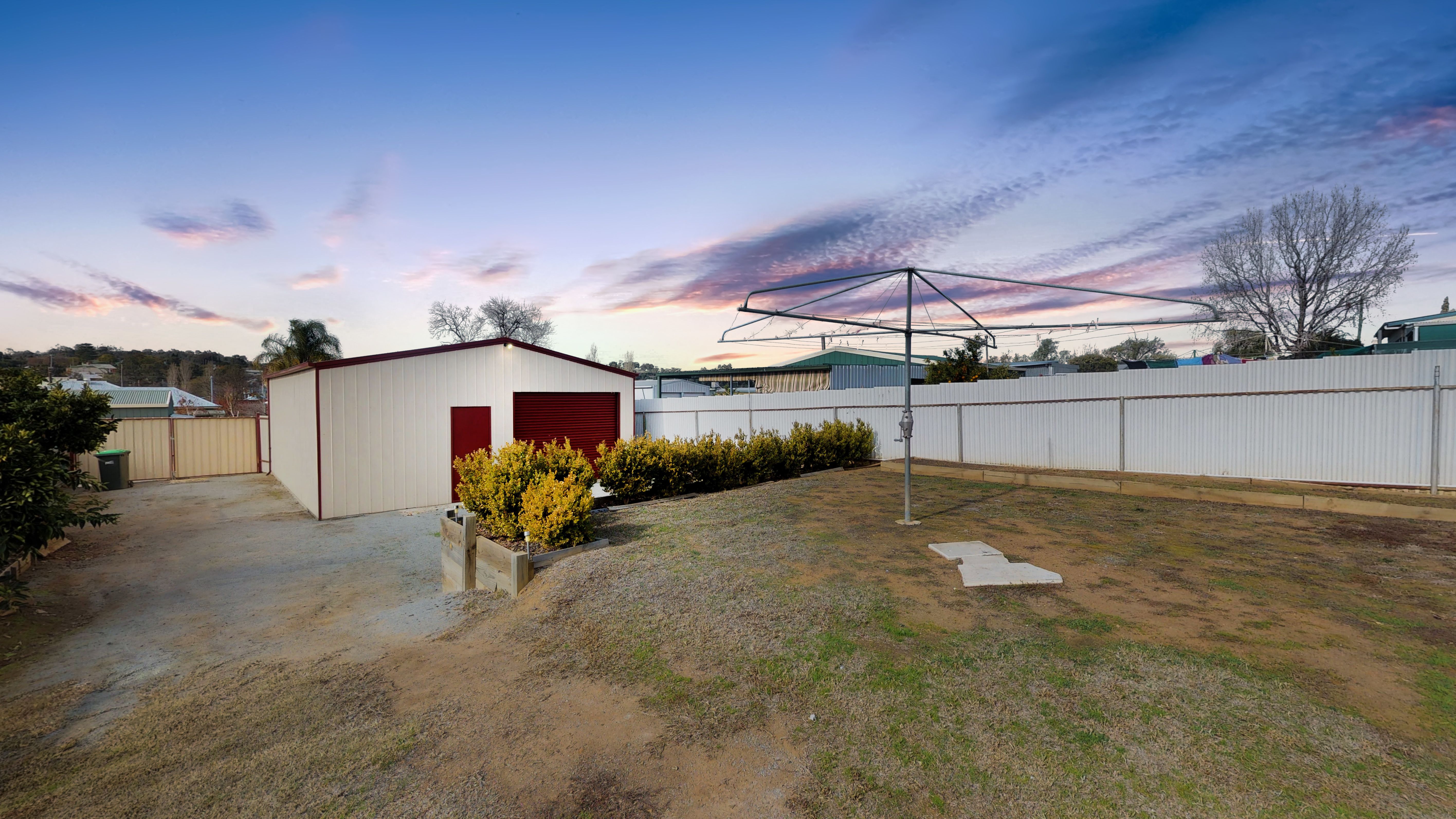 Elevated deck which overlooks an easy to maintain yard whilst enjoying a great 4 bay shed with drive through access plus additional access up the side