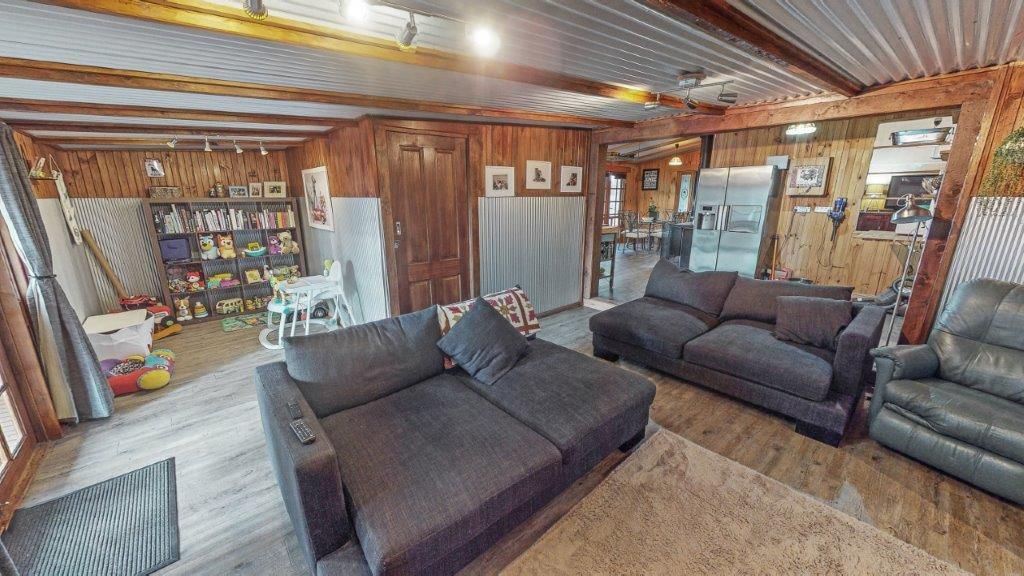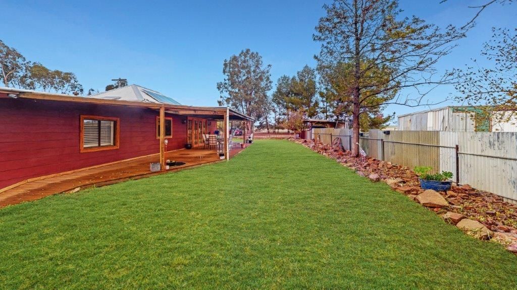 Fenced paddock at the front ( approx. 6 acres ) plus additional land that buts up to the railway line and wraps around the house
