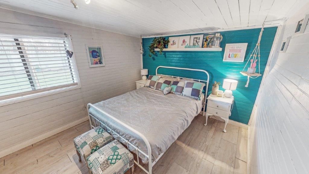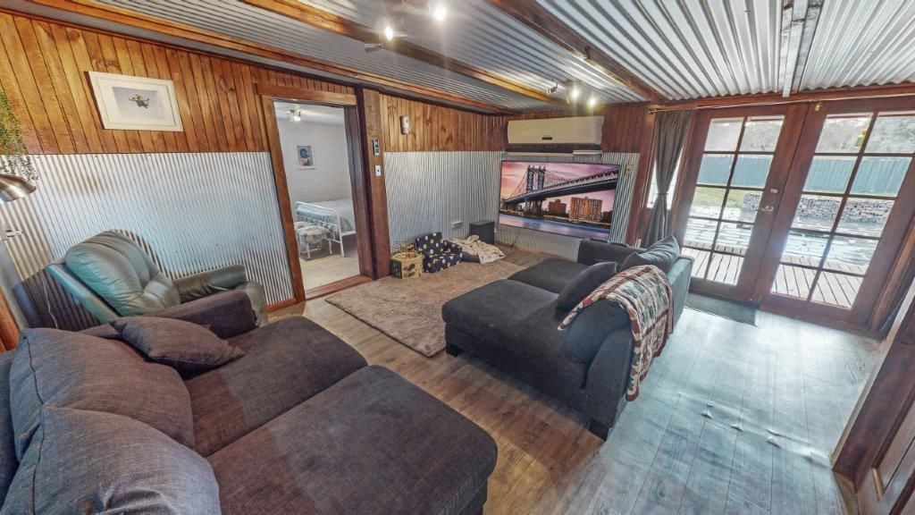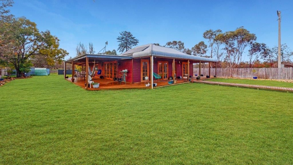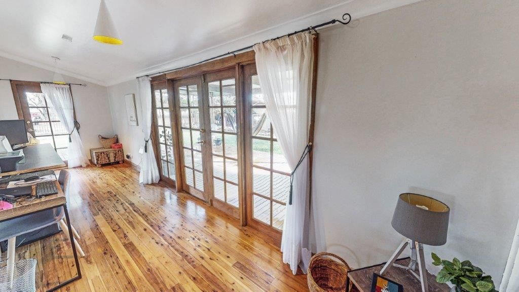 French doors open out from the bedrooms to the timber verandah that wraps around the home plus an additional home office that too, opens to the verandah