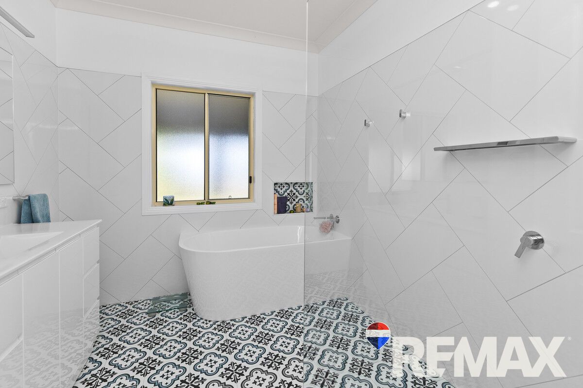 The private master suite, positioned at the end of the house, offers external access, his and hers robes, and a renovated ensuite with a frameless shower. The main bathroom has been fully modernized with striking herringbone wall tiles, classic contemporary floor tiles, and a separate shower and bath. A well appointed laundry with external access, generous cupboards, and bench space adds to the home's practicality.