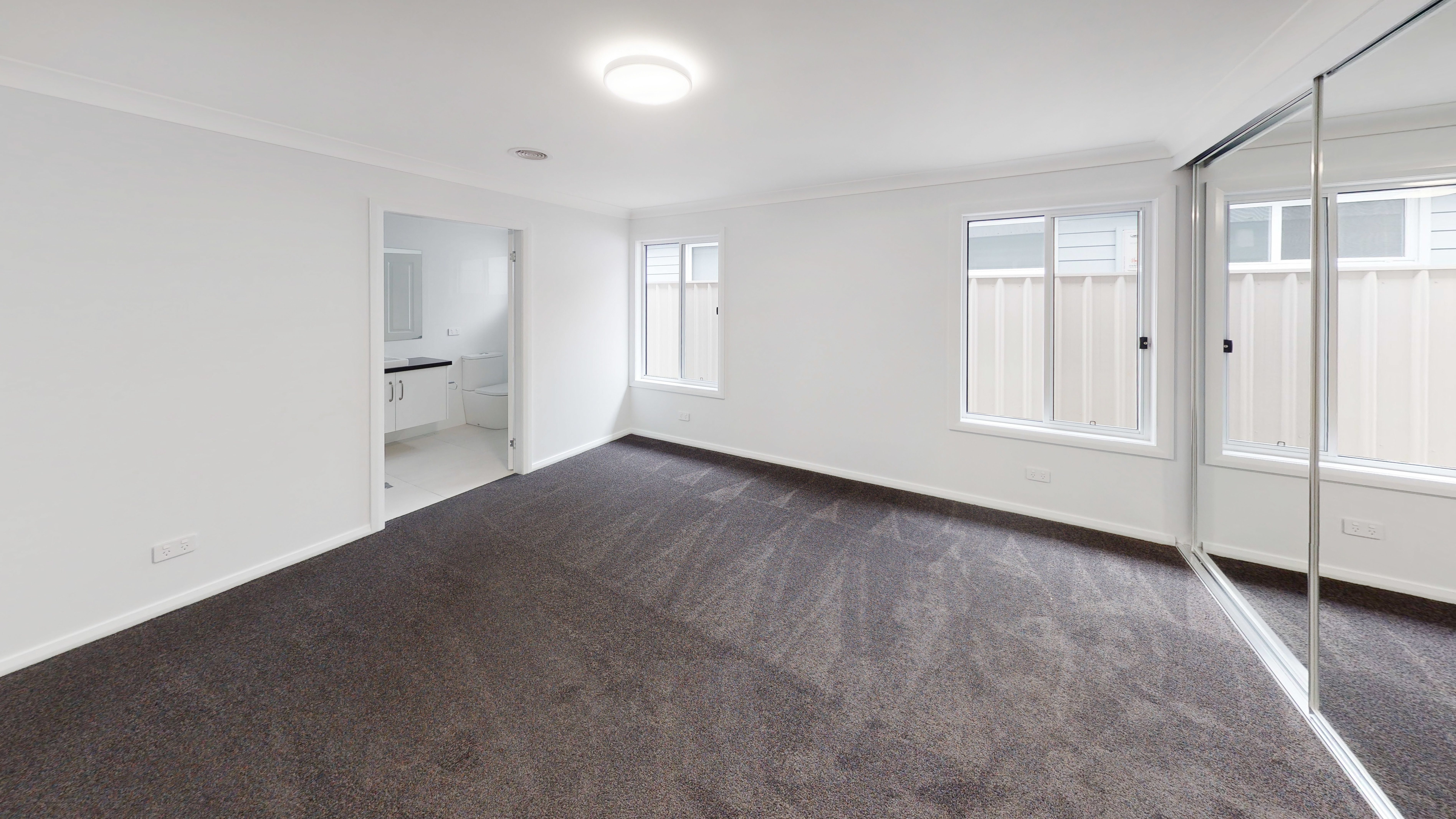 Main bedroom features a wall of robes and a spacious en-suite. The bathroom is spacious with floor to wall tiles plus great storage options and stone vanity top.